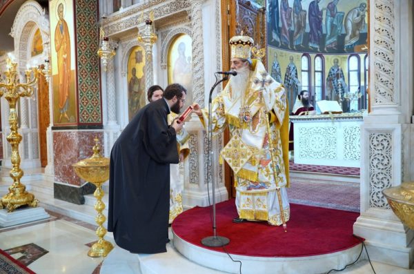 Κατά την διάρκεια της Θείας Λειτουργίας ο  προϊστάμενος του Καθεδρικού Ναού Πανοσιολογιώτατος Αρχιμανδρίτης π. Δανιήλ Ψωίνος, ανέγνωσε την σχετική με την ημέρα Ποιμαντορική Εγκύκλιο του Σεβασμιωτάτου Μητροπολίτου Πειραιώς κ.Σεραφείμ.