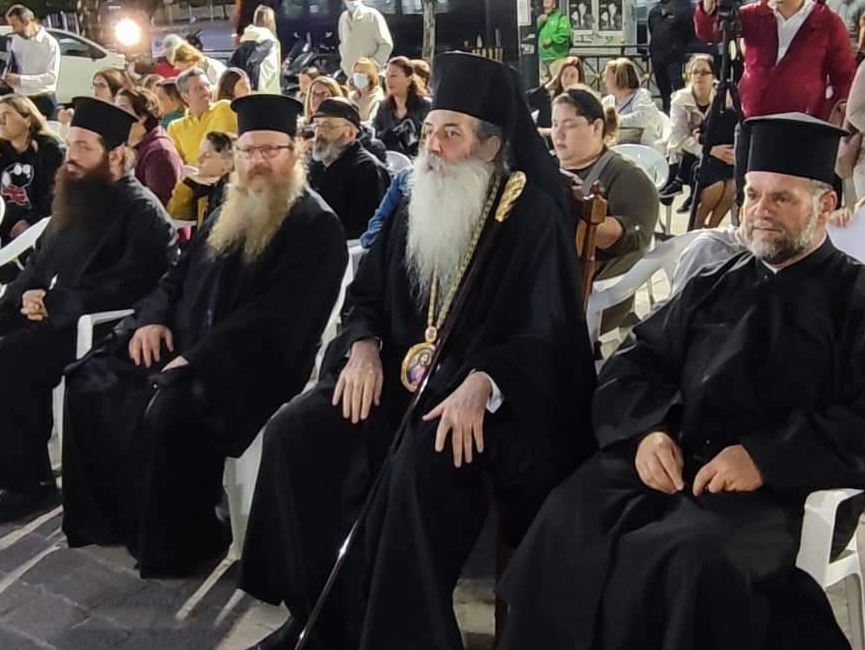Κατά τον σύντομο χαιρετισμό του ο Σεβασμιώτατος κ. Σεραφείμ, αναφέρθηκε στο έργο του Ωδείου της Μητροπόλεως, το οποίο διατηρεί ζωντανή τόσο την πλούσια μουσική παράδοση, όσο και την τέχνη της Ιεροψαλτικής, αφού εδώ και πολλά χρόνια παραμένει φυτώριο, στελεχώνοντας τα ιερά αναλόγια.