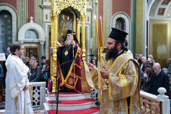 Χοροστάτησε και κήρυξε το θείο Λόγο ο Σεβασμιώτατος Μητροπολίτης Φιλίππων κ. Στέφανος και συγχοροστάτησαν οι Σεβασμιώτατοι Μητροπολίτες Βεροίας κ. Παντελεήμων και Πειραιώς κ. Σεραφείμ.