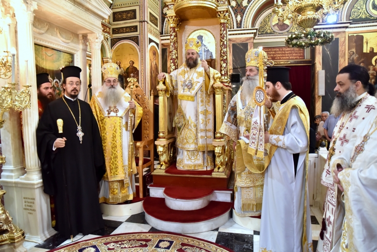 Ευχαρίστησε θερμά τον Σεβασμιώτατο Μητροπολίτη Πειραιώς κ.Σεραφείμ για την πρόσκληση και φιλοξενία του και συνεχάρη με θερμά λόγια τον Προϊστάμενο του Μητροπολιτικού Ιερού Ναού π.Ιωάννη Παναγιώτου για την όλη φροντίδα της Ιεράς Πανηγύρεως, την επιμέλεια και την γενικότερη ευταξία του ιστορικού και περικαλλούς Ιερού Ναού.
