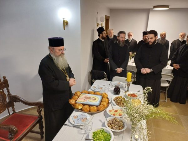 Ο Σεβασμιώτατος ευχαρίστησε για την διακονία, την προσφορά και την συνεργασία τους κληρικούς που κοπιάζουν για το ποιμαντικό έργο της Εκκλησίας. Ιδιαίτερα αναφέρθηκε στις προσπάθειες του πρωτοσυγκέλλου της Ιεράς Μητροπόλεως π. Άγγελου Ανθόπουλου ο οποίος τον τελευταίο χρόνο αναλώθηκε προκειμένου να αποπερατωθούν οι εργασίες ανεγέρσεως τη νέας Ιεράς Μονής.