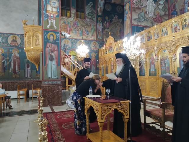 Τέλος, ἀφοῦ εὐλόγησε τούς παρευρισκομένους, τούς εὐχαρίστησε γιά τήν παρουσία τους στήν τελετή τοῦ Ἁγιασμοῦ, εὐχήθηκε καλή καί εὐλογημένη κατηχητική χρονιά καί παρέδωσε τά διοριστήρια στούς 140 κατηχητές καί κατηχήτριες τῆς Ἱερᾶς Μητροπόλεώς μας, μέ τήν ὑπόσχεση ὅτι θά εἶναι δίπλα τους ὡς φιλόστοργος Πατέρας καί ἀδελφός, πού θά θυσιάζει τόν ἑαυτό του πρός τό συμφέρον τοῦ πληρώματος τῆς Ἐκκλησίας πού ὁ Χριστός τοῦ ἐνεπιστεύθη.