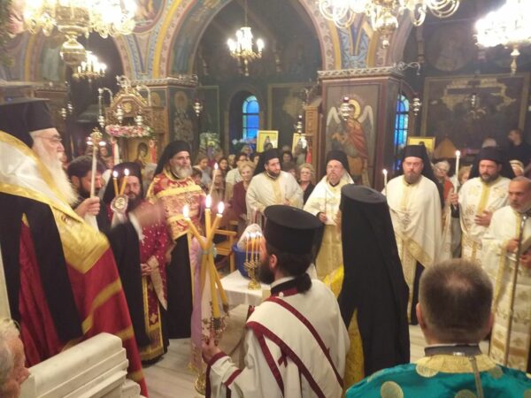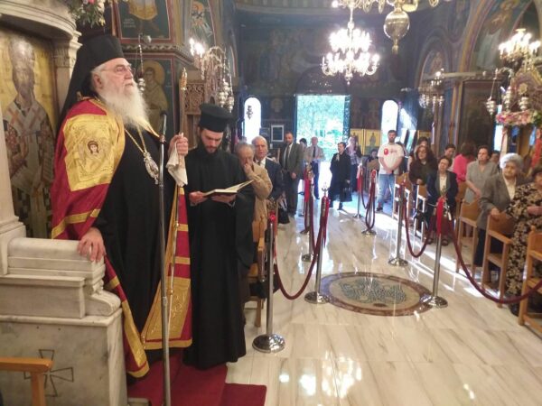 Τελέστηκε, σήμερα, 25 Μαίου 2019, ο Μέγας Εσπερινος της Εορτής της Αγίας Φωτεινής της Σαμαρείτιδος στον ομώνυμο ιερό ναό του Ιλισσού. Στον εσπερινό χοροστάτησε ο Σεβ. Μητροπολίτης Περιστερίου, κ. Κλήμης.