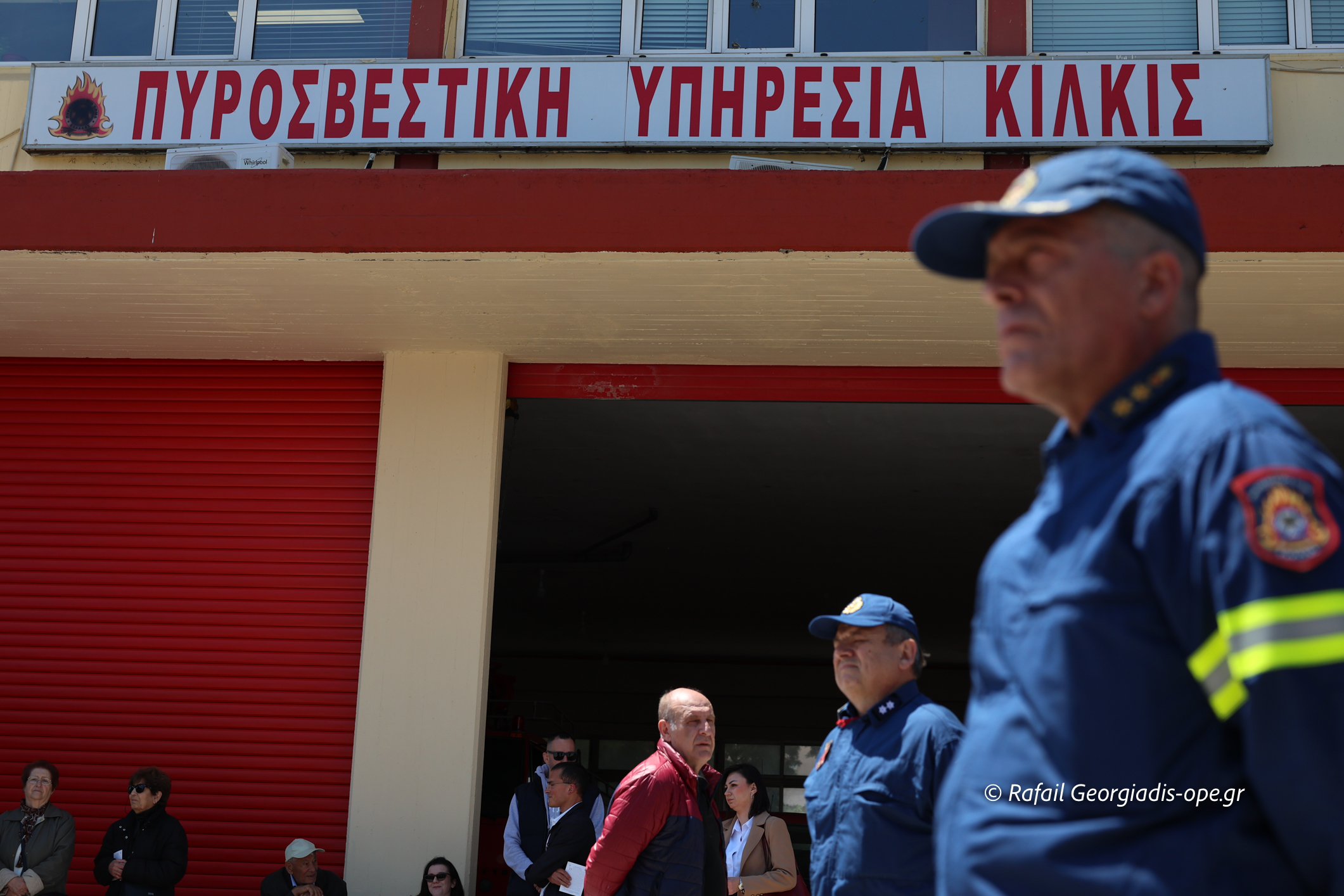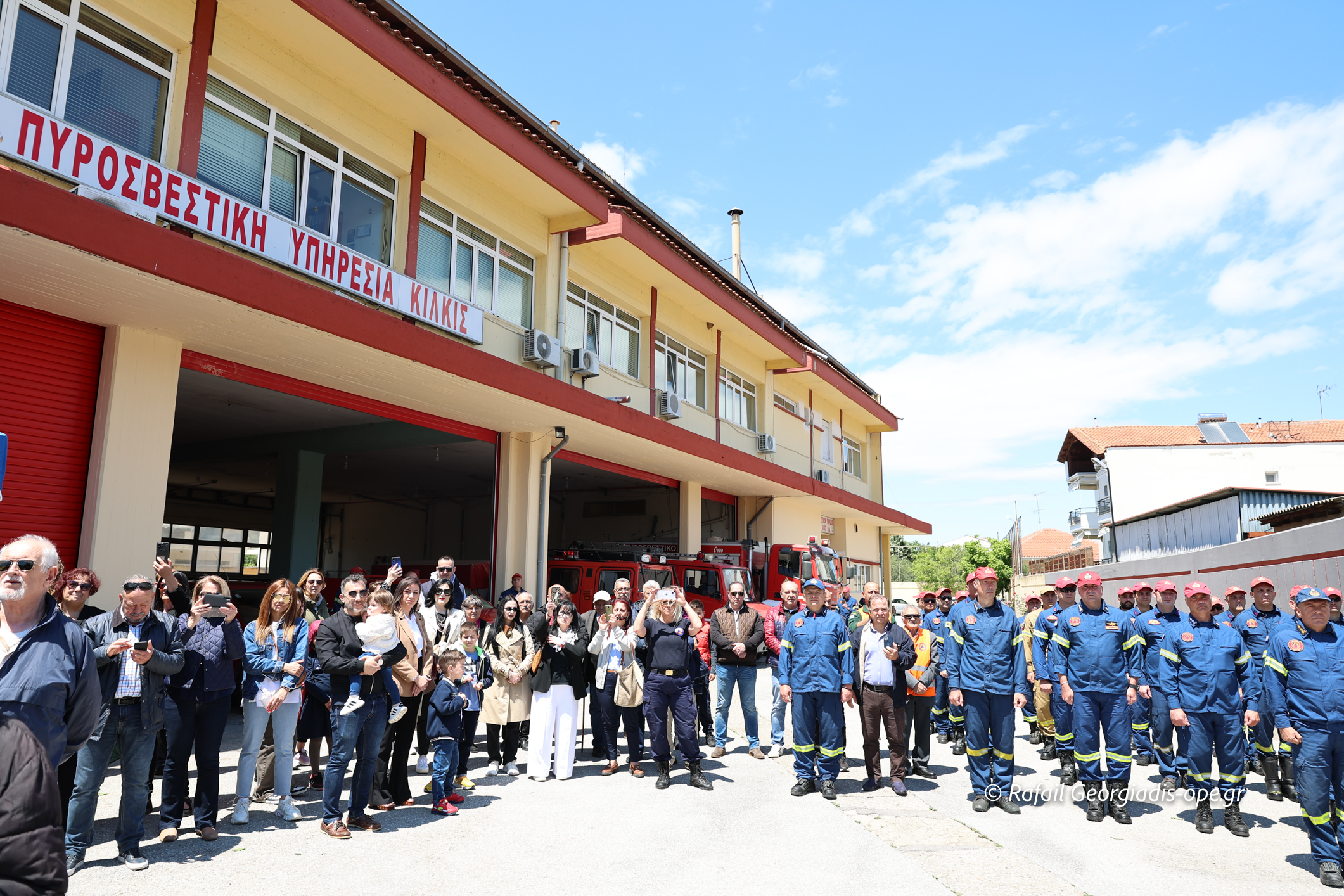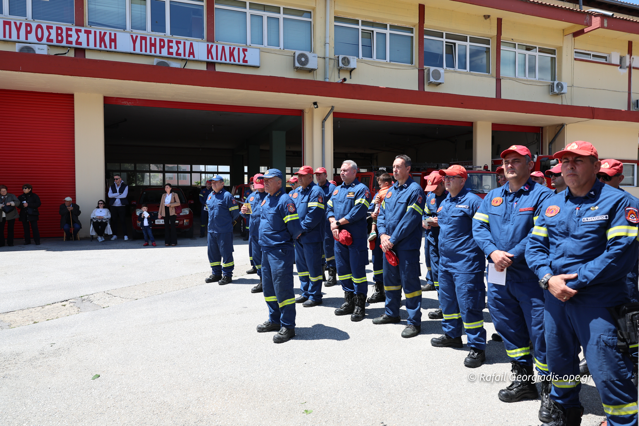 Στη συνέχεια ο Σεβασμιώτατος με πατέρες της Μητροπόλεως και της Ι.Μ.Μ. Βατοπαιδίου κατέφθασαν στις εγκαταστάσεις της Πυροσβεστικής Υπηρεσίας Κιλκίς, όπου έγινε υποδοχή με αψίδα από πίδακες νερού των πυροσβεστικών οχημάτων.