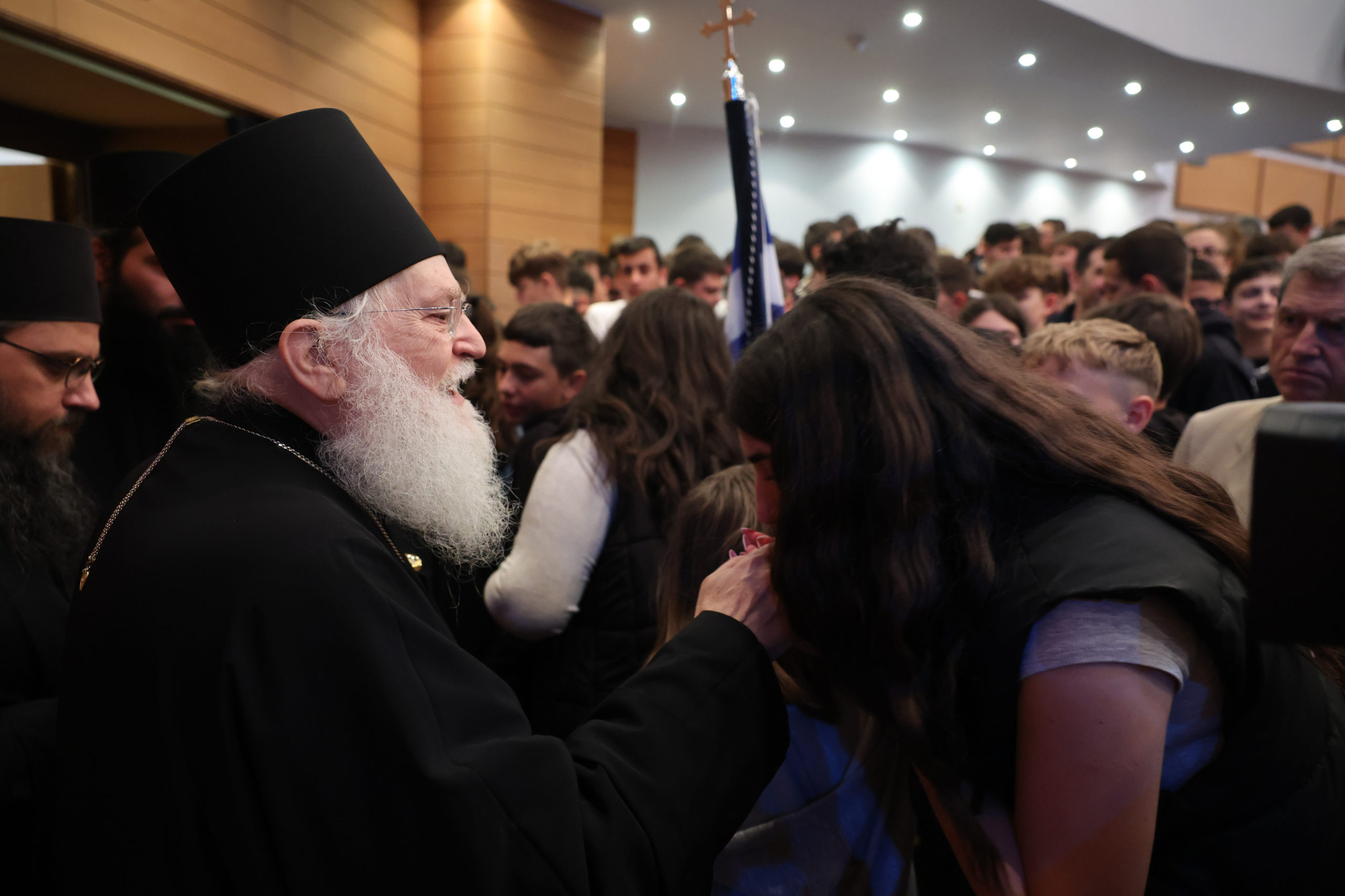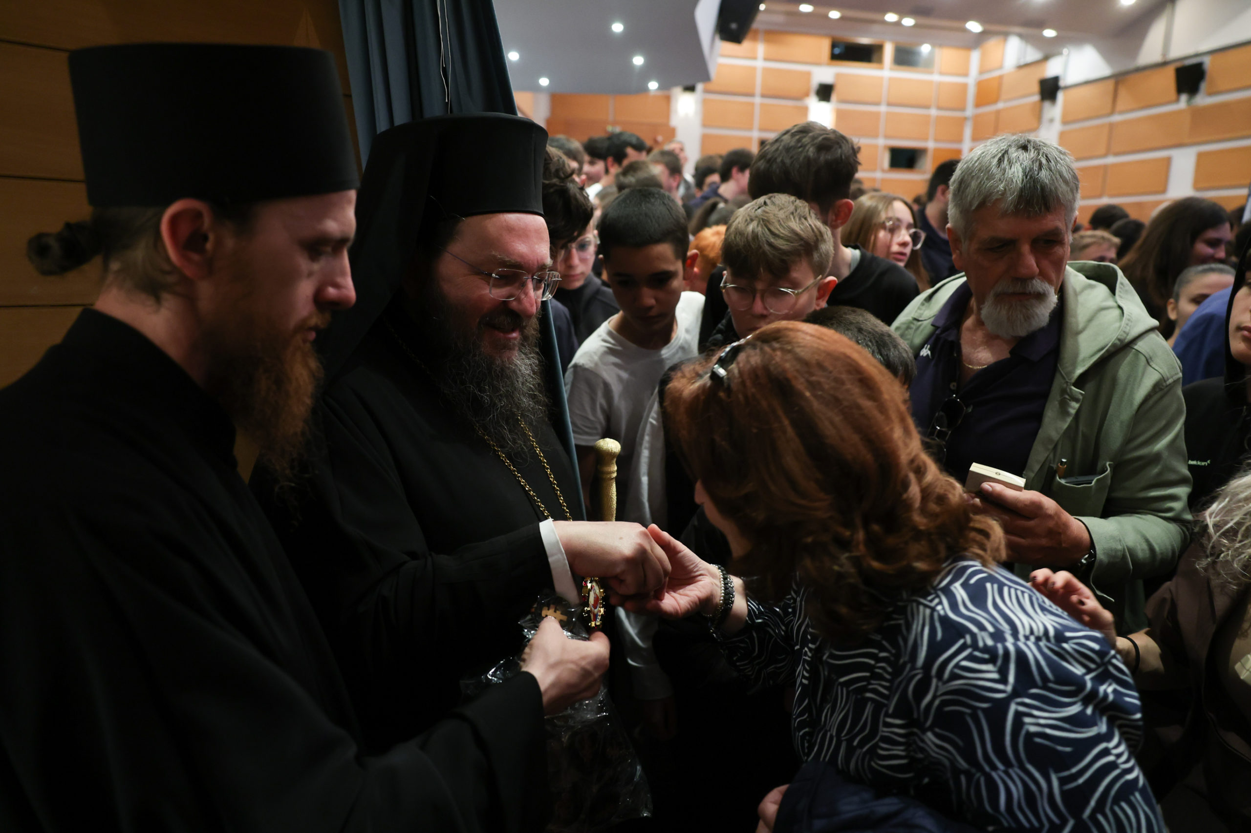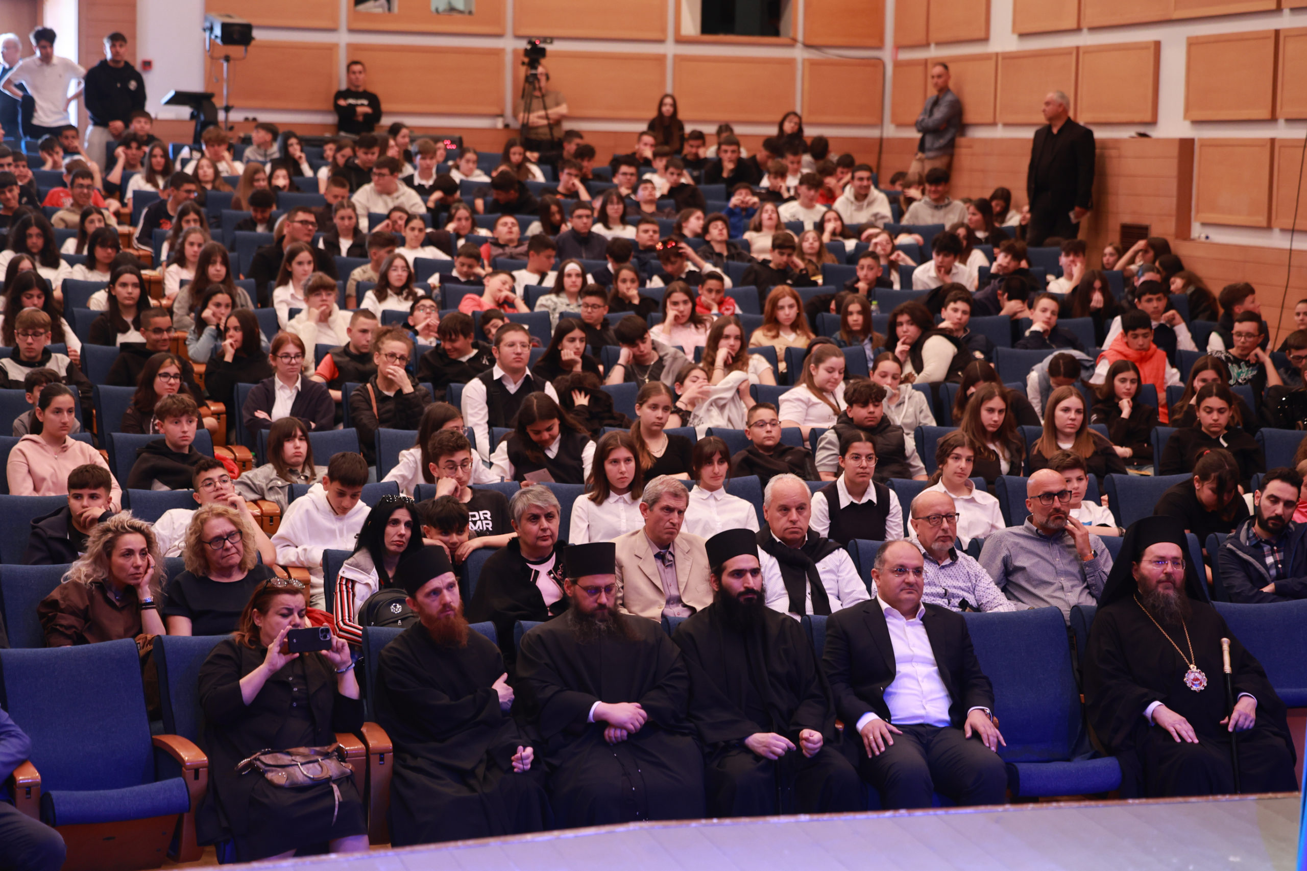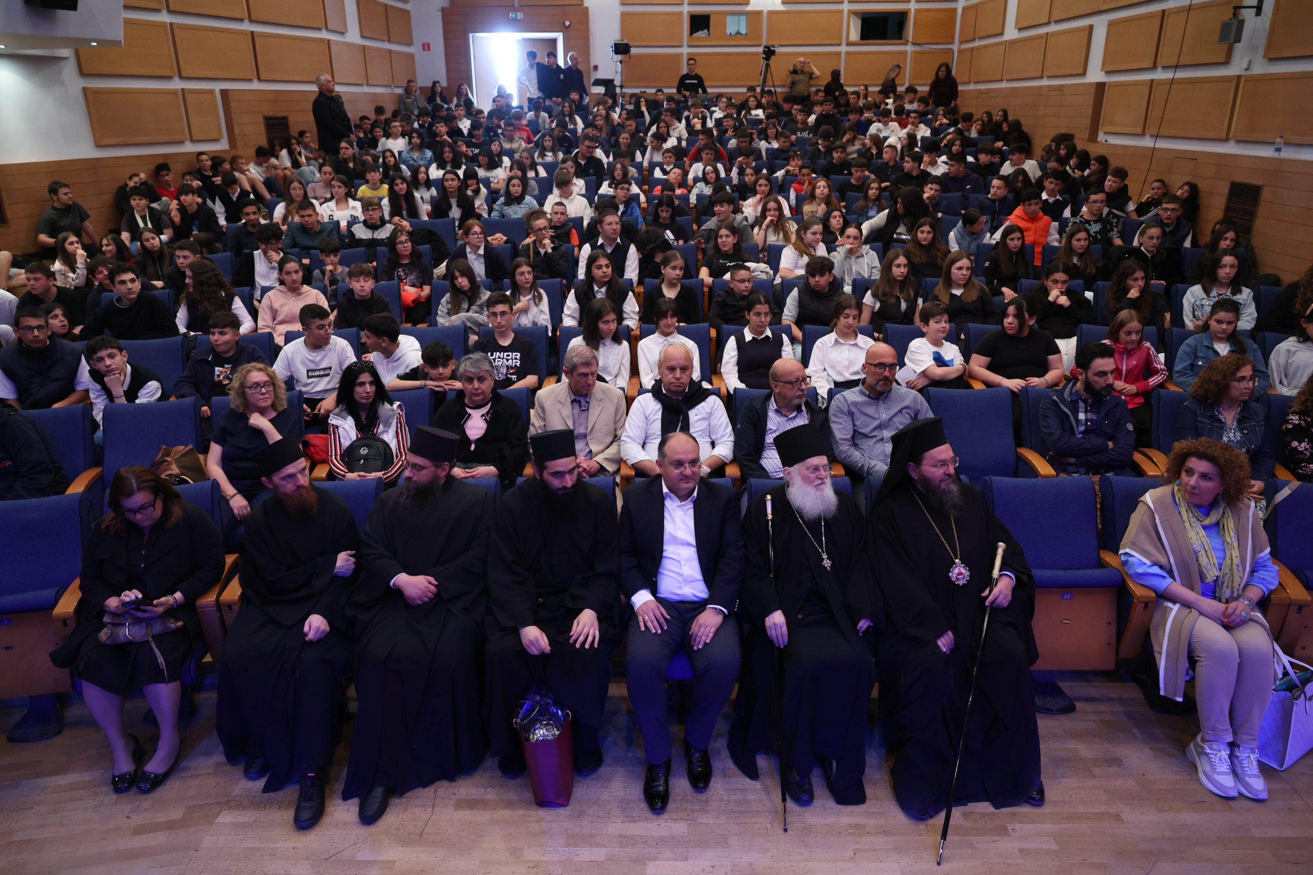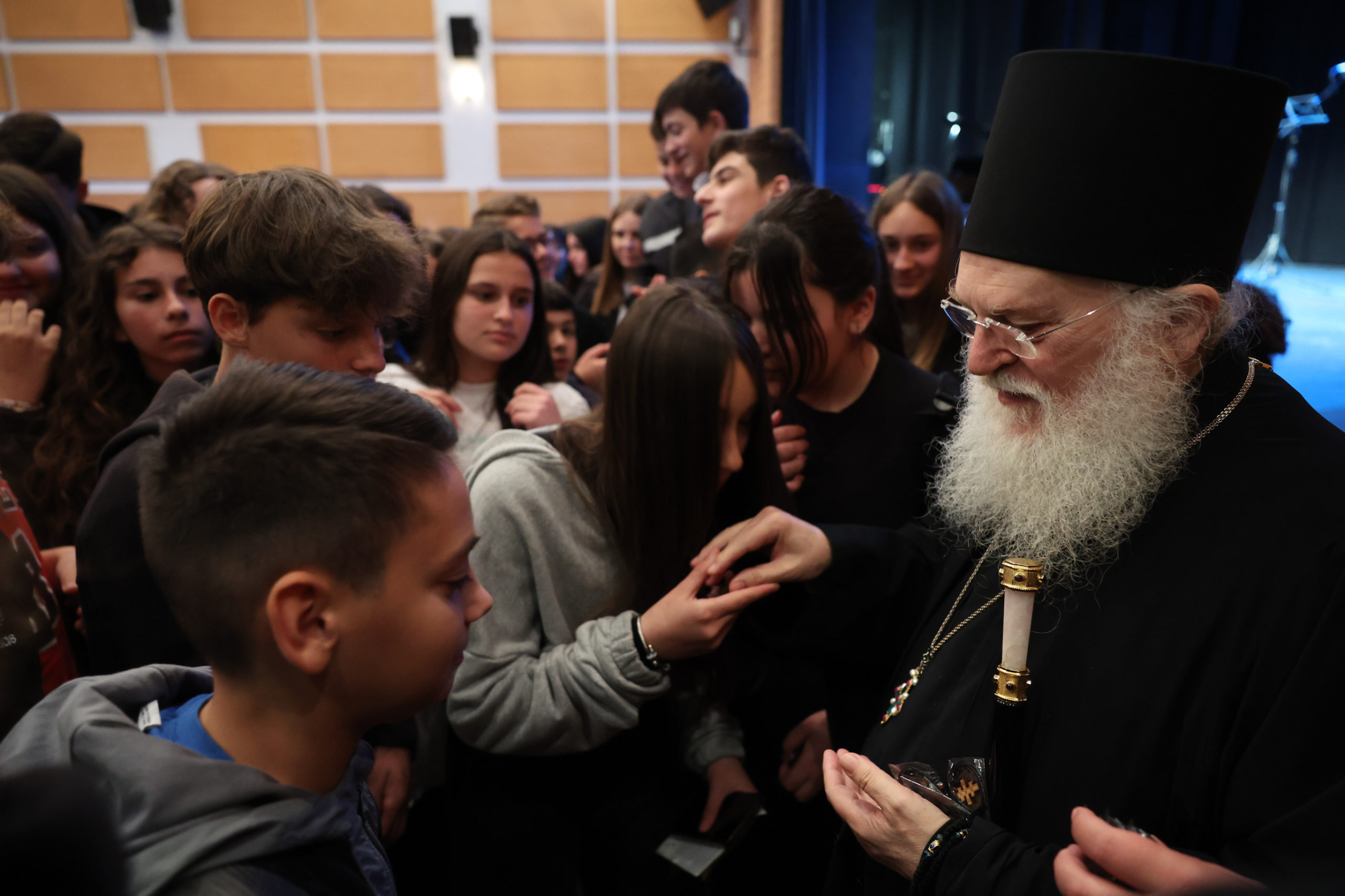 Στη συνέχεια ο Γέροντας μετέβη στο Συνεδριακό Κέντρο του Δήμου Κιλκίς, όπου μίλησε σε μαθητές του 3ου Γυμνασίου Κιλκίς.