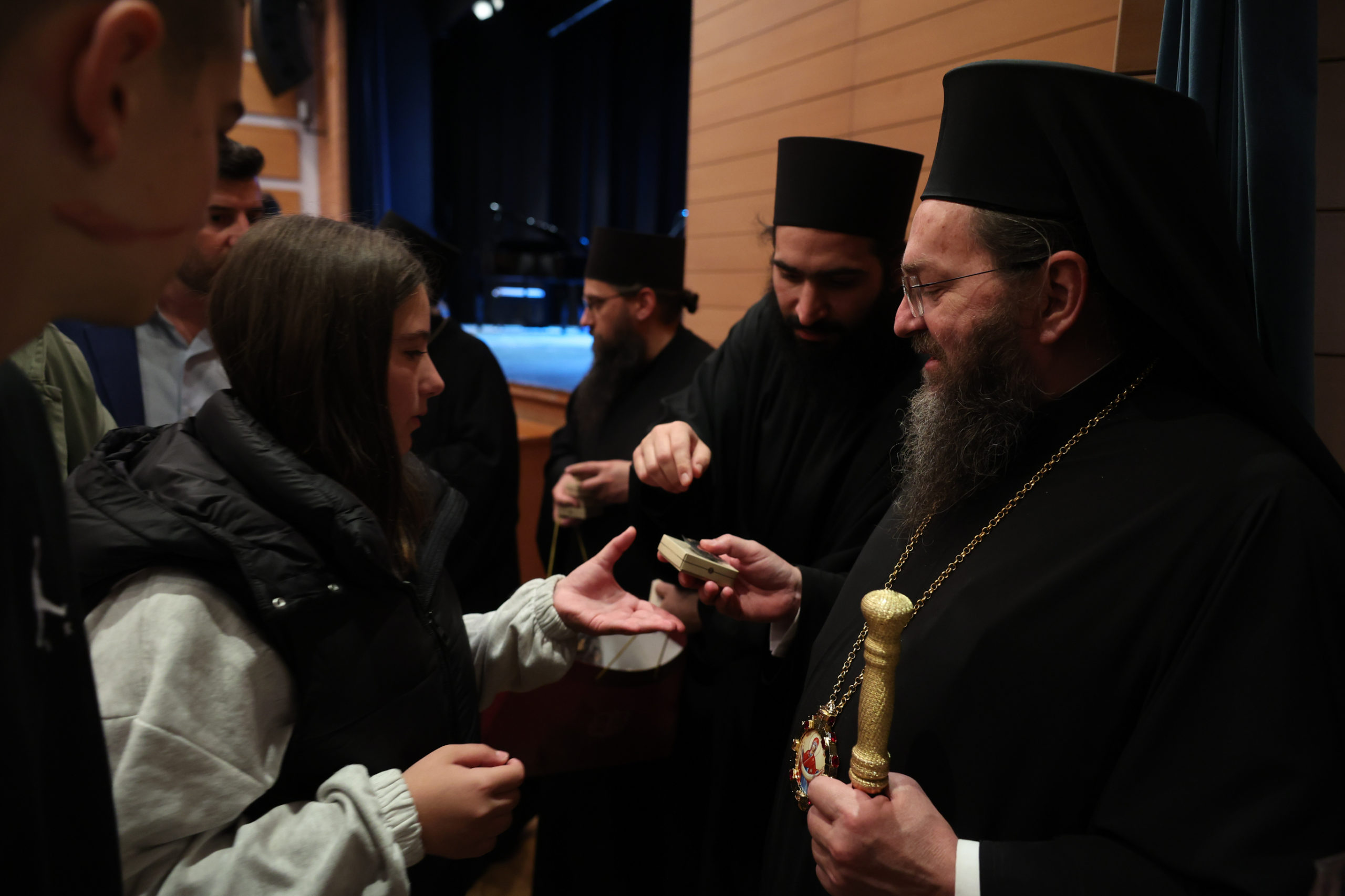 “Ήρθαμε εδώ για πρώτη φορά με την Αγία Ζώνη, και εύχομαι να σας βοηθήσει, εύχομαι να προσκυνήσετε με πόθο, να παρακαλέσετε την Παναγία για την δική σας πρόοδο και για την οικογένειά σας και για τους συμμαθητές σας, για τον κόσμο εδώ, για τους πονεμένους, για τους ασθενείς, για τους αναγκεμένους και νομίζω ότι η Παναγία θα βοηθήσει“, ανέφερε στα παιδιά ο Γέροντας Εφραίμ.