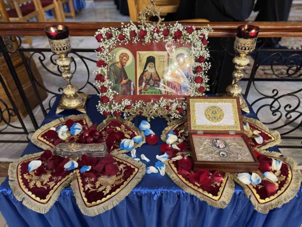 Κατά τη διάρκεια της Ιεράς Ακολουθίας τέθηκαν σε προσκύνηση αποτμήματα των Ιερών και Θαυματουργών Λειψάνων του Αγίου Αποστόλου Βαρθολομαίου και του Αγίου Λουκά Επισκόπου Συμφερουπόλεως του Ιατρού.