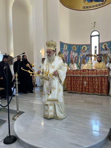 Ο Σεβασμιώτατος κ. Πρόδρομος καλωσόρισε και ευχαρίστησε με ευγνωμοσύνη τον Σεβασμιώτατο Μητροπολίτη Γορτύνης και Αρκαδίας κ. Μακάριο για την ευλογητική έλευσή του και την τέλεση των Ιερών Εγκαινίων και της Θείας Λειτουργίας, τονίζοντας τη σπουδαιότητα της μαρτυρίας των Αγίων Δέκα Μαρτύρων και των Αγίων Νεομαρτύρων ως εκδήλωση της διά των αιώνων συνέχειας στη ζωή της Εκκλησίας.