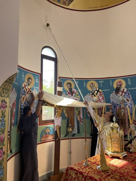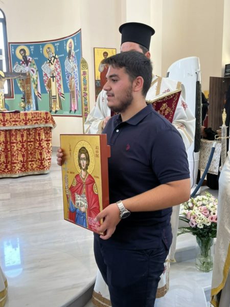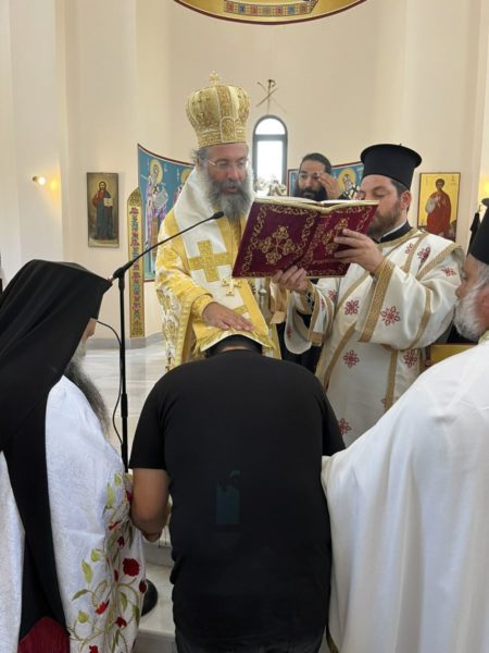 Συνεχάρη επίσης εγκάρδια τον Εφημέριο της Ενορίας, Αιδεσιμολ. Πρωτοπρεσβύτερο Ηλία Κοτζαμπασάκη, το Εκκλησιαστικό Συμβούλιο και όλους τους καλούς συνεργούς του, που εργάστηκαν φιλόπονα για την προετοιμασία των Ιερών Εγκαινίων, ενώ χειροθέτησε σε Αναγνώστη τον υιό του π. Ηλία, Μάριο Κοτζαμπασάκη, και σε Εκκλησιάρχη, τον κ. Εμμανουήλ Βογιατζόγλου.