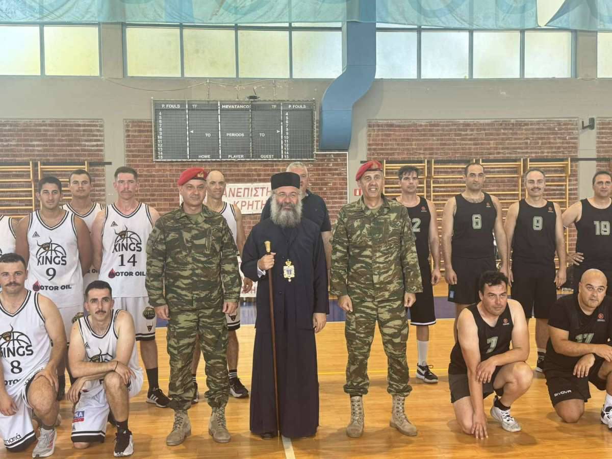 Ο Μητροπολίτης Πρόδρομος στον αγώνα καλαθοσφαίρισης των στρατοπέδων του Ρεθύμνου