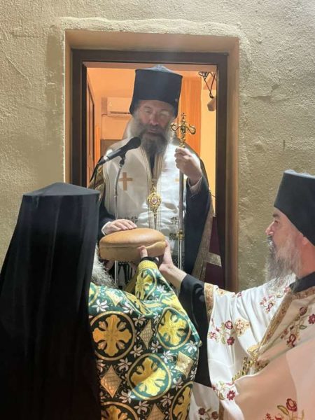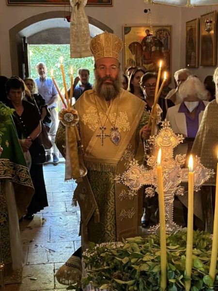 Το πρωί της κυριωνύμου ημέρας της Εορτής, Πέμπτης, 14ης Σεπτεμβρίου 2023, ο Σεβασμιώτατος κ. Πρόδρομος μετέβη στην πανηγυρίζουσα Ιερά Πατριαρχική και Σταυροπηγιακή Μονή Τιμίου Σταυρού Βωσάκου, στο Μυλοπόταμο, όπου χοροστάτησε κατά τον Όρθρο και τέλεσε την Αρχιερατική Θεία Λειτουργία, συμπαραστατούμενος υπό του Καθηγουμένου της Μονής, Πανοσιολ. Αρχιμ. Τιμοθέου Παναγιωτάκη, και άλλων Κληρικών.
