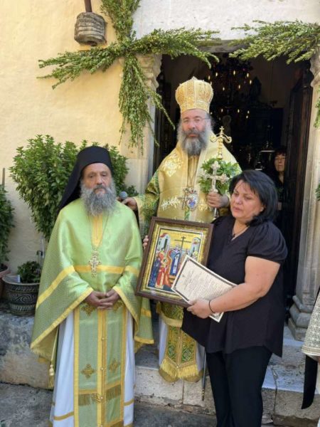 Προ της απολύσεως της Θείας Λειτουργίας, τιμήθηκαν από την Ιερά Μητρόπολη και την Ιερά Μονή ο κ. Εμμανουήλ Κλάδος, για την 20ετή και πλέον προσφορά και διακονία του στο μοναστήρι και τα ανακαινιστικά έργα σε αυτό, καθώς και η οικογένεια του μακαριστού Δημητρίου Παπαδογιάννη, ο οποίος εξεδήμησεν εις Κύριον προ διετίας, για την πολλή του αγάπη προς την Ιερά Μονή Βωσάκου και την προσφορά του σε αυτήν.