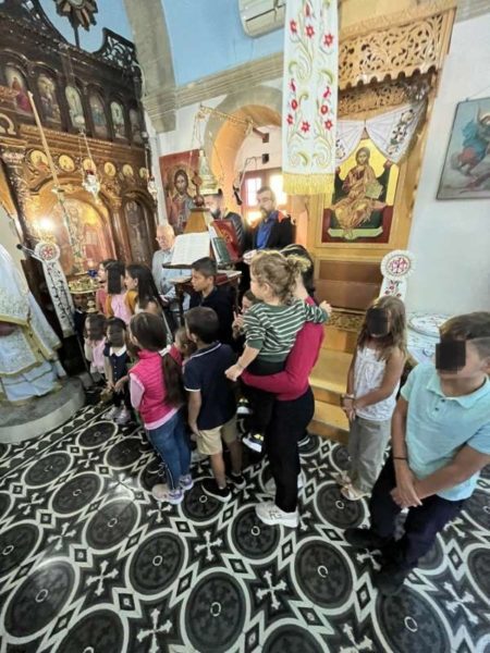 Μετά την Θεία Λειτουργία, ακολούθησε πλούσιο κέρασμα και παραδοσιακή τράπεζα, την οποία συνόδευσαν τα παιδιά του τόπου με ωραίους κρητικούς χορούς, στο προαύλειο του Ιερού Ναού.