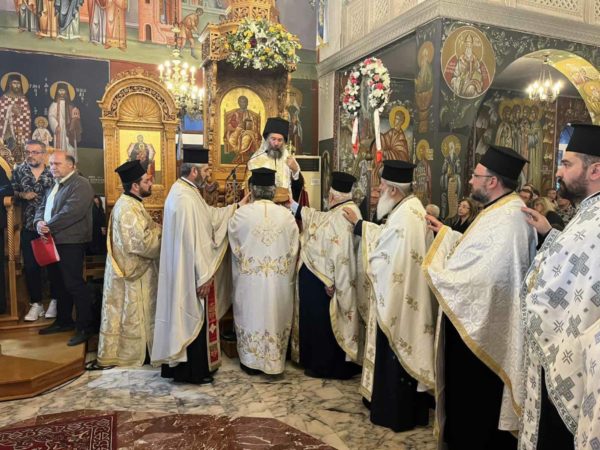 Το πρωί της Κυριακής, 21ης Μαΐου 2023, κυριωνύμου ημέρας της Εορτής, ο Ποιμενάρχης κ. Πρόδρομος χοροστάτησε στον Όρθρο και τέλεσε την Θεία Λειτουργία στο Καθολικό της πανηγυρίζουσας Ιεράς Πατριαρχικής και Σταυροπηγιακής Μονής Αρκαδίου, το ένα κλίτος του οποίου είναι αφιερωμένο στους Αγίους Κωνσταντίνο και Ελένη, προστάτες και εφόρους της ιστορικής Ιεράς Μονής.