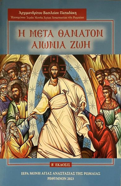 Το απόγευμα της Δευτέρας, 9ης Οκτωβρίου 2023, στις κατάμεστες αίθουσες του Κέντρου Πολιτισμικής και Κοινωνικής Διακονίας «ΘΕΟΜΗΤΩΡ» της Ιεράς Μητροπόλεως Ρεθύμνης και Αυλοποτάμου, παρουσιάσθηκε το βιβλίο με τίτλο «Η ΜΕΤΑ ΘΑΝΑΤΟΝ ΑΙΩΝΙΑ ΖΩΗ», το οποίο μόλις κυκλοφόρησε σε δεύτερη έκδοση, πόνημα του Πανοσιολογιωτάτου Αρχιμανδρίτου Βασιλείου Παπαδάκη, Ηγουμένου της Ιεράς Μονής Αγίας Αναστασίας της Ρωμαίας Ρεθύμνης.