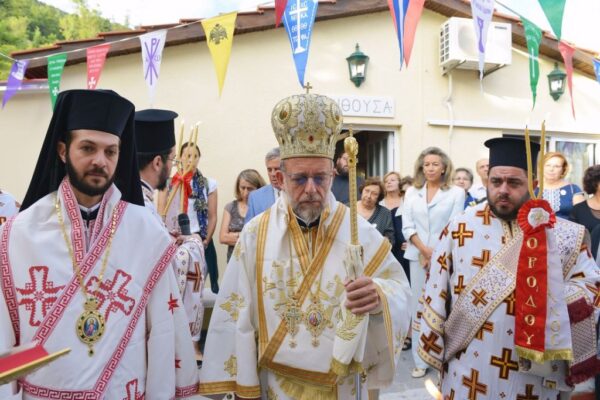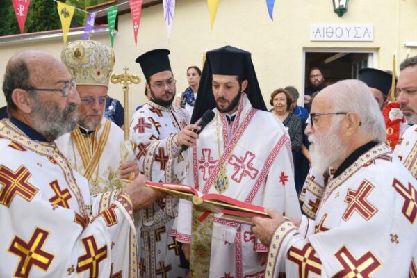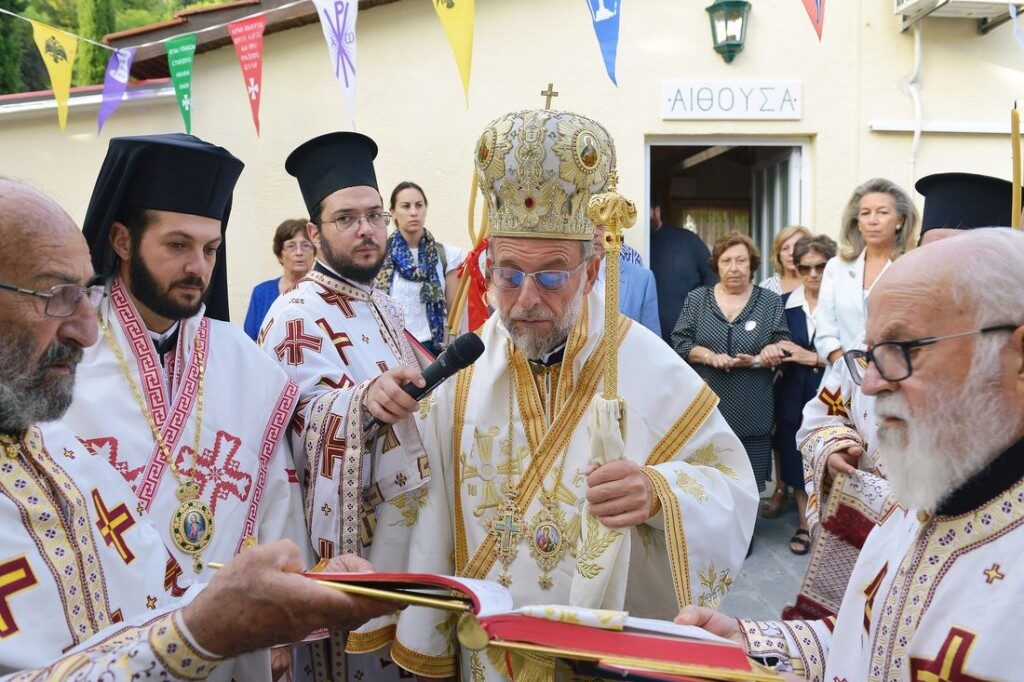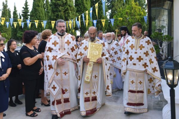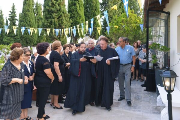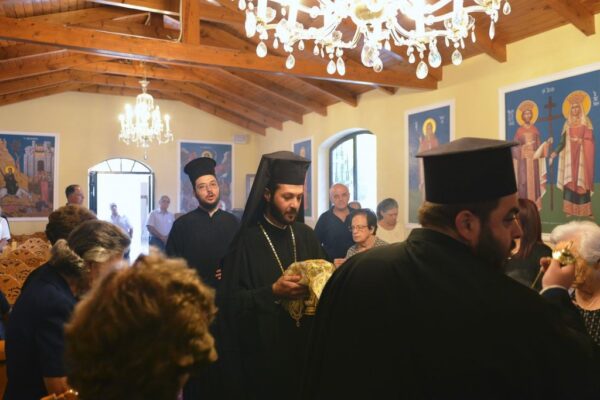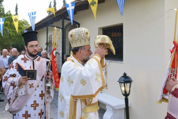 Στην ομιλία του ο Σεβασμιώτατος, μεταξύ των άλλων, εξέφρασε την ευαρέσκεια της Εκκλησίας προς τον Προϊστάμενο της Ενορίας Πρεσβύτερο π. Κωνσταντίνο Χατζημιχαήλ, καθώς επίσης και προς τα μέλη του Εκκλησιαστικού Συμβουλίου, επαίνεσε του ευσεβείς δωρητές και εξέφρασε ευχαριστίες προς όλους όσοι βοήθησαν από το περίσσευμα ή το υστέρημα τους να συντελεστεί μέσα σε τόσο μικρό διάστημα το έργο της ανακαινίσεως και διακοσμήσεως του ιερού Κοιμητηριακού Ναού της Ενορίας τους.