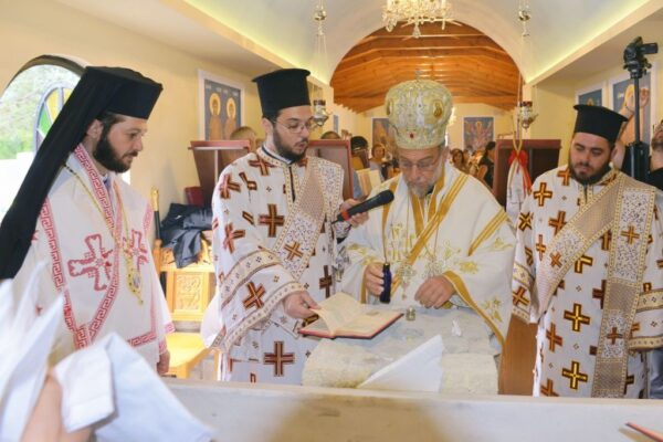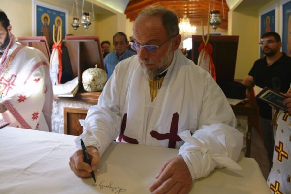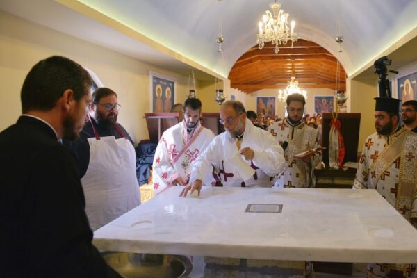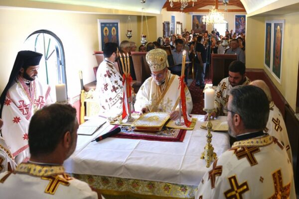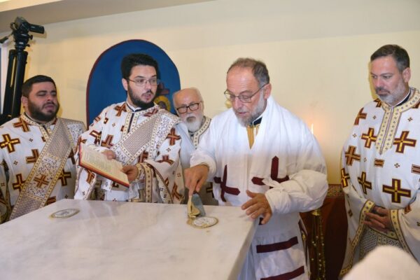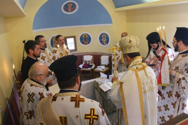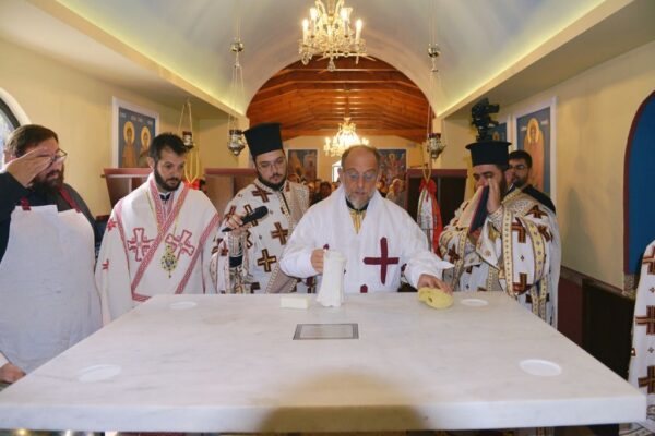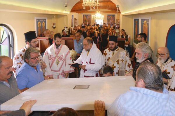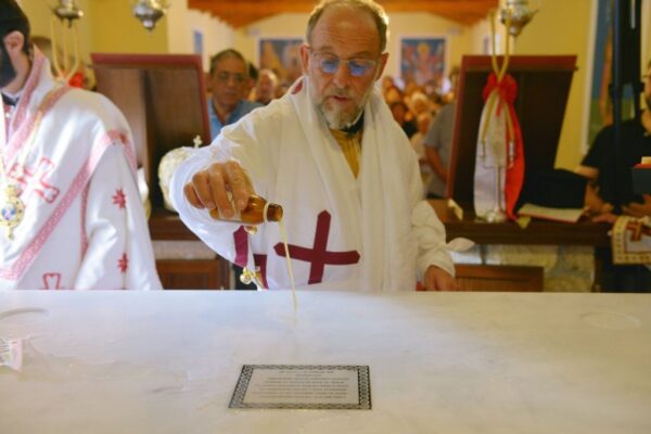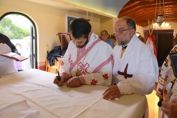 Της Ακολουθίας των Εγκαινίων προέστη ο Σεβασμιώτατος Μητροπολίτης Ρόδου κ. Κύριλλος και συμμετείχε και ο Θεοφιλέστατος Επίσκοπος Ολύμπου κ. Κύριλλος. Στο φυτό της αγίας Τραπέζης κατετέθησαν αποτμήματα τιμίων Λειψάνων των Αγίων: Ιερομαρτύρων Ισιδώρου του εν Βαλή της Κρήτης και Κυρίλλου του Λουκάρεως, Πατριάρχου Κωνσταντινουπόλεως και των Οσιομαρτύρων Πατέρων της Λαύρας του Οσίου Θεοδοσίου.