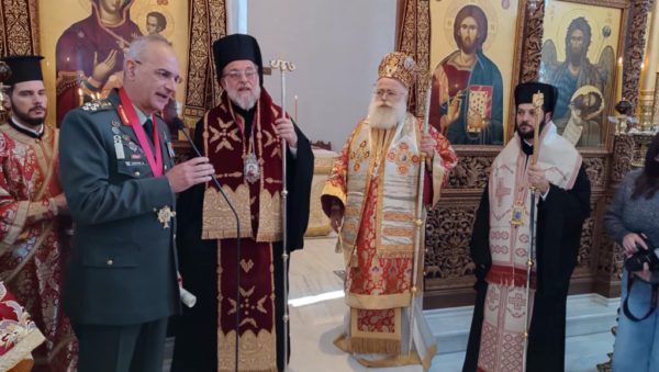 Στη προσφώνησή του εξήρε το ήθος και την προσφορά του Αρχηγού ΓΕΕΘΑ στην πατρίδα και την Εκκλησία, ευχαρίστησε προσωπικά για την ειλικρινή και γόνιμη συνεργασία κατά τό χρονικό διάστημα που αυτός ήταν Διοικητής της εδρεύουσας στο νησί μας 95ης Διοικήσεως Ταγμάτων Εθνοφυλακής (2019-2020) και ευχήθηκε τα δέοντα. Αντιφώνησε ο τιμώμενος εκφράζοντας τις ευχαριστίες του για την τιμητική διάκριση.