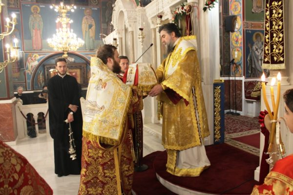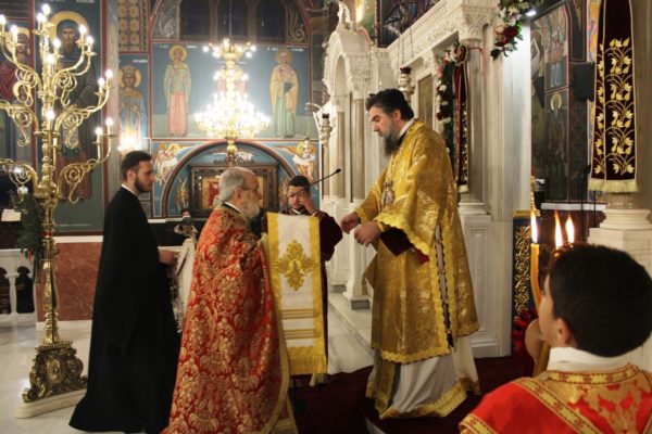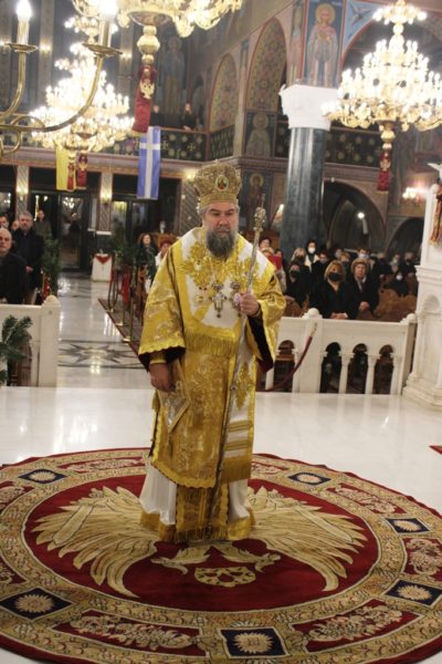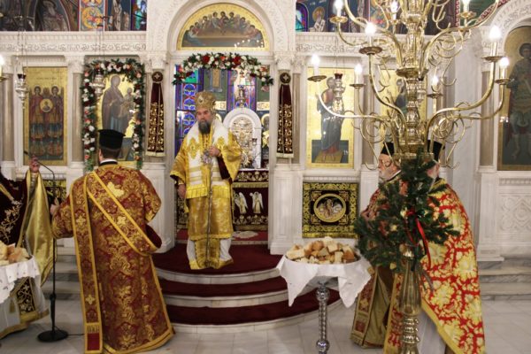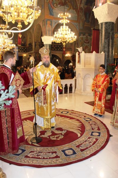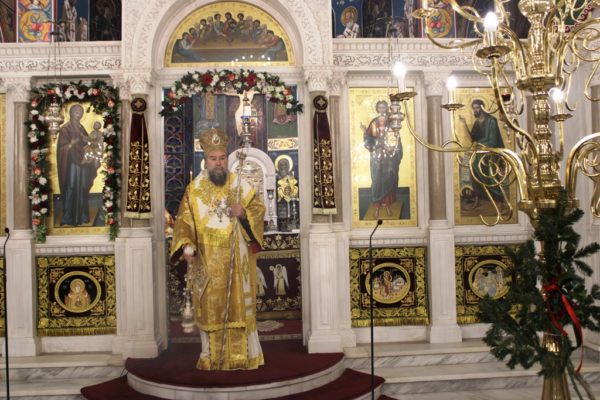 Σήμερα, Κυριακή 25 Δεκεμβρίου, την μεγαλώνυμο ημέρα των αγίων Χριστουγέννων, τελέσθηκε η πανηγυρική Θ. Λειτουργία στον ως είρηται Ιερό Μητροπολιτικό Ναό, ιερουργούντος του Σεβασμιωτάτου Μητροπολίτου κ. Θεολόγου.