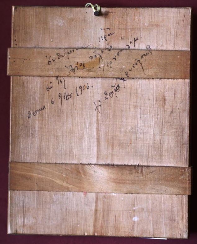 Πρόκειται για την φορητή εικόνα του Χριστού Παντοκράτορος, διαστάσεων 22,1×17,7 εκατ., η οποία φέρει ιδιόχειρη υπογραφή του από Δράμας αγίου εθνοϊερομάρτυρος Μητροπολίτου Σμύρνης Χρυσοστόμου.