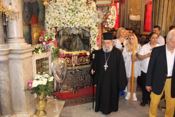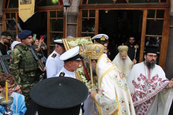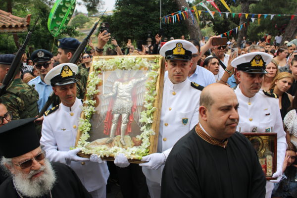 Προ της απολύσεως της Θείας Λειτουργίας, τελέσθηκε η καθιερωμένη λιτάνευση της θαυματουργού εικόνος του Αρχαγγέλου, πέριξ του ιερού Προσκυνήματος, παρουσία χιλιάδων ευλαβών πιστών, των Αρχών του τόπου, της στρατιωτικής ηγεσίας και εκπροσώπων των Σωμάτων ασφαλείας.