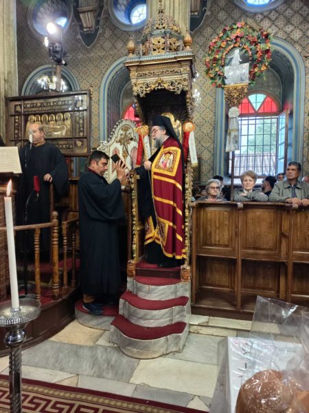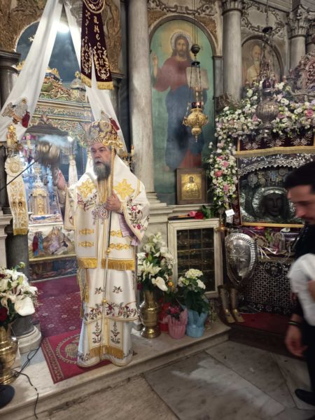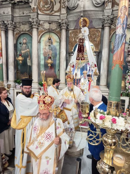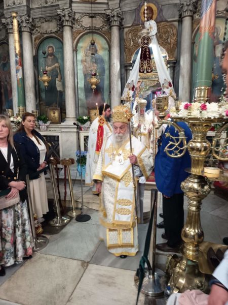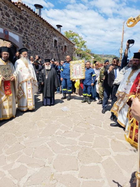 Συγκεκριμένως, το Σάββατο 3Μαΐου, τελέσθηκε ο μέγας πανηγυρικός,πολυαρχιερατικόςΕσπερινός, χοροστατήσαντος του Σεβ. ΜητροπολίτουΖιχνών και Νευροκοπίου κ. Ιεροθέου, συγχοροστατησάντων των Σεβ. Μητροπολιτών Μυτιλήνης, Ερεσσού και Πλωμαρίου κ. Ιακώβου,Σερρών και Νιγρίτης κ. Θεολόγου,Ελευθερουπόλεως κ. Χρυσοστόμου, Γρεβενών κ. Δαβίδκαι του αειθαλούς και ευγενεστάτου οικείου ΠοιμενάρχουΜηθύμνης κ. Χρυσοστόμου.