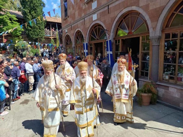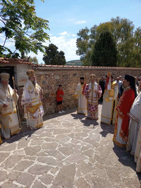 Εχθές, Κυριακή των «Μυροφόρων», 4 Μαΐου, τελέσθηκε, στο ως είρηται ιερό Προσκύνημα, πολυαρχιερατικόΣυλλείτουργο, προεξάρχοντος του Σεβ. Μητροπολίτου Μυτιλήνης, Ερεσσού και Πλωμαρίου κ. Ιακώβου, συνιερουργησάντων των Σεβ. Μητροπολιτών Σερρών και Νιγρίτης κ. Θεολόγου, Ζιχνών και Νευροκοπίου κ. Ιεροθέου, Ελευθερουπόλεως κ. Χρυσοστόμου, Γρεβενών κ. Δαβίδ και Μηθύμνης κ. Χρυσοστόμου.