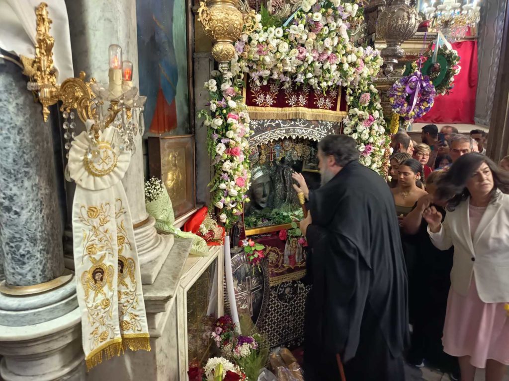 Προ της απολύσεως της θ. Λειτουργίας, τελέσθηκε η καθιερωμένη λιτάνευση της θαυματουργού εικόνος του Αρχαγγέλου, πέριξ του ιερού Προσκυνήματος, παρουσία χιλιάδων ευλαβών πιστών, των Αρχών του τόπου, της Στρατιωτικής ηγεσίας και εκπροσώπων των Σωμάτων Ασφαλείας.
