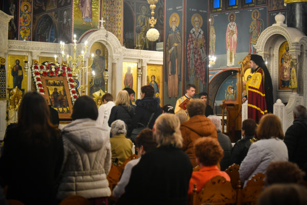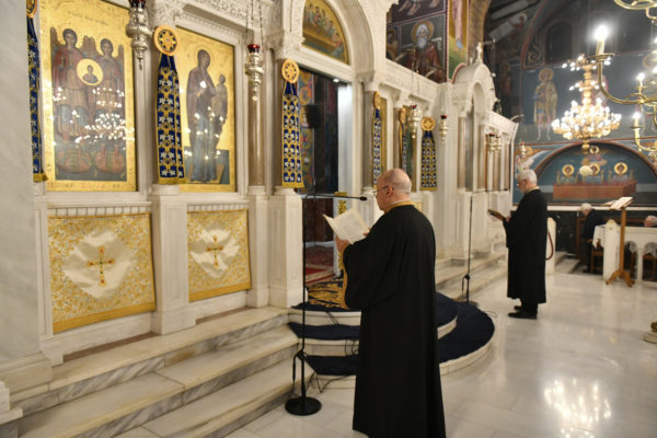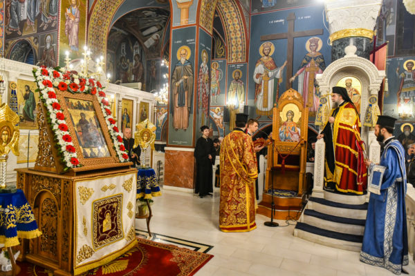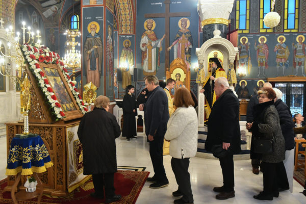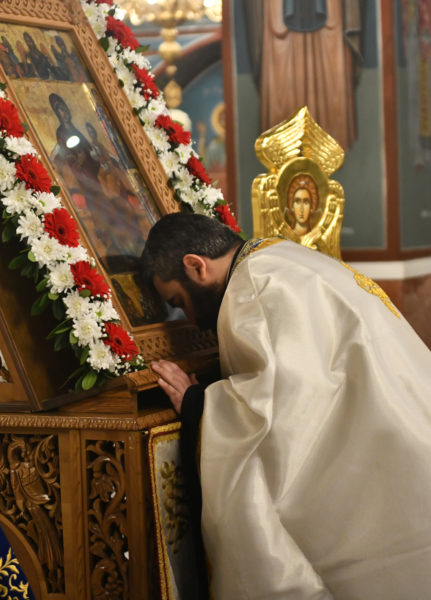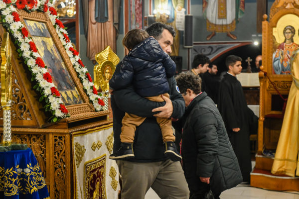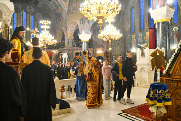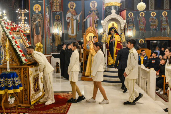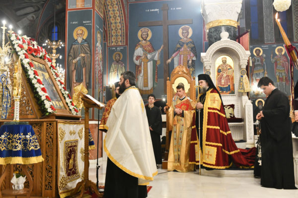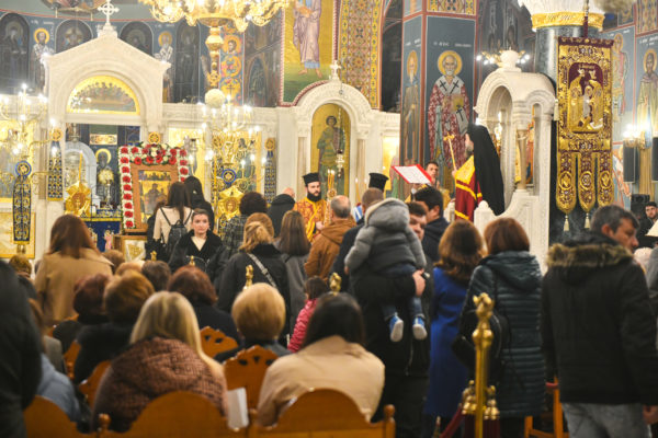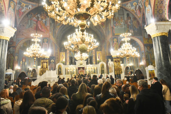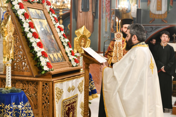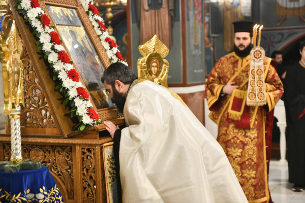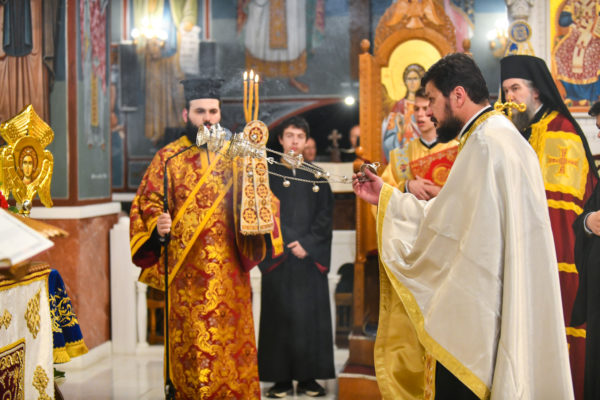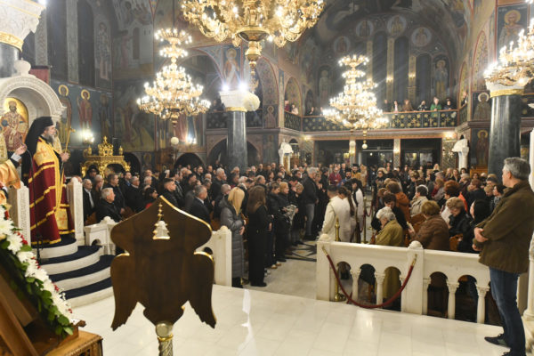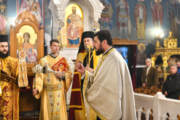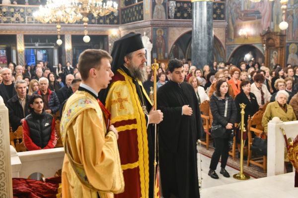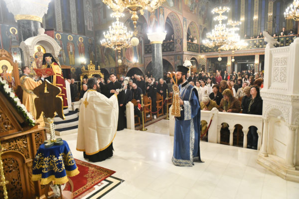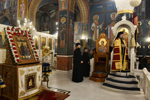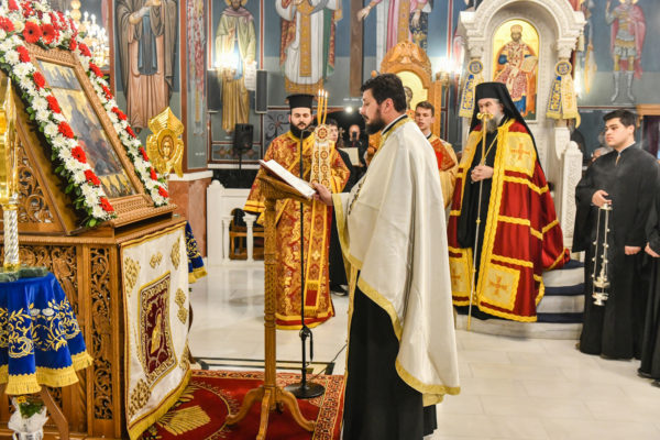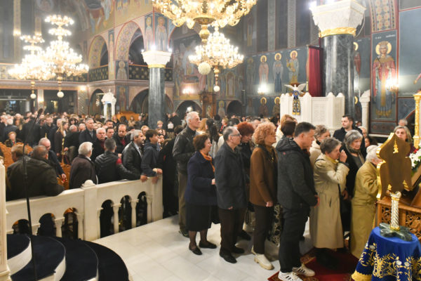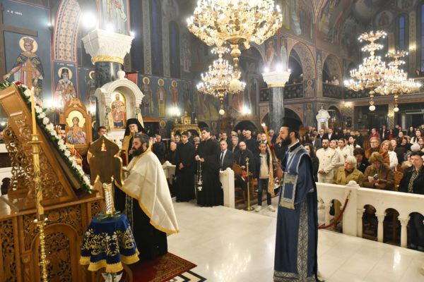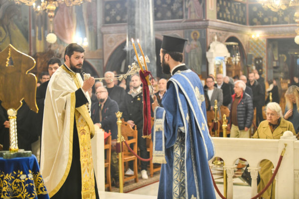 Αμέσως μετά, τελέσθηκε ιερά αγρυπνία, με αφορμή την εορτή του Ακαθίστου Ύμνου, με την πολυπληθή παρουσία ευλαβών χριστιανών, οι οποίοι προσήλθαν στον οίκο του Θεού, για να εκκλησιασθούν και να μεταλάβουν από το Ποτήριον της Ζωής.