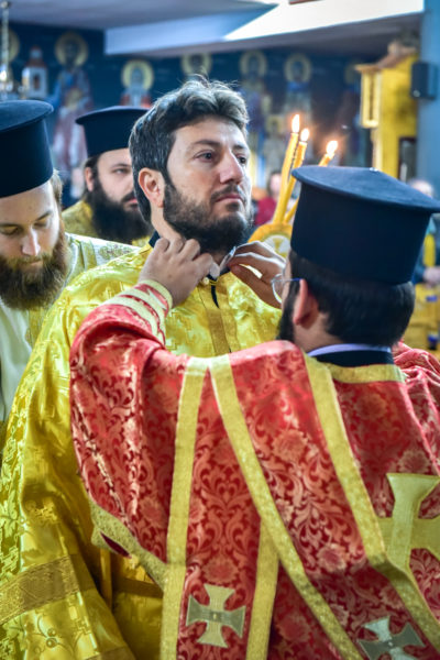 Ο νέος διάκονος, βαθειά συγκινημένος, προ της χειροτονίας του, απηύθυνε λόγους δοξολογίας προς τον άγιο Θεό αλλά και ευγνώμονος ευχαριστίας προς τον σεπτό Ποιμενάρχη της Εκκλησίας των Σερρών, τον πνευματικό του πατέρα, την σεμνή σύζυγό του και τα παιδιά τους, τους κατά σάρκα οικογενείς του, τους κληρικούς και τον πιστό λαό, οι οποίοι συνήργησαν στην κατά Θεόν προκοπή του.