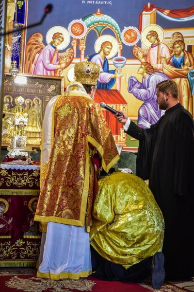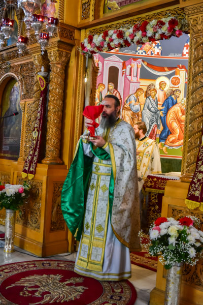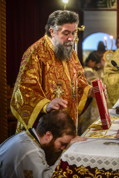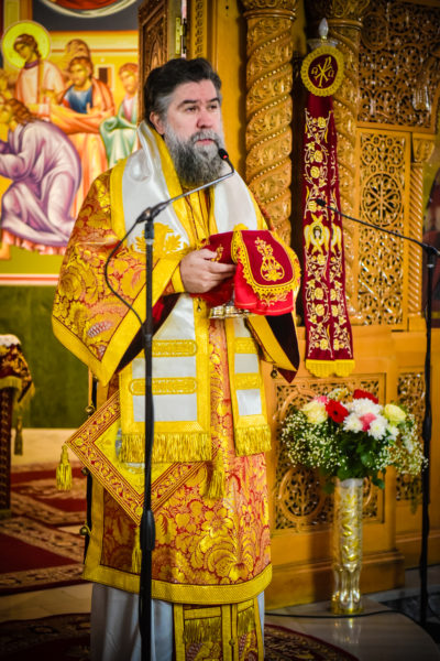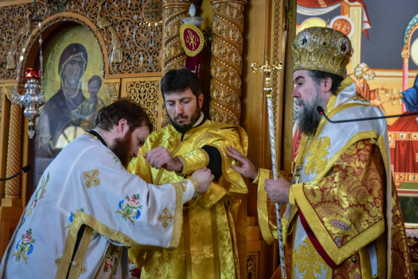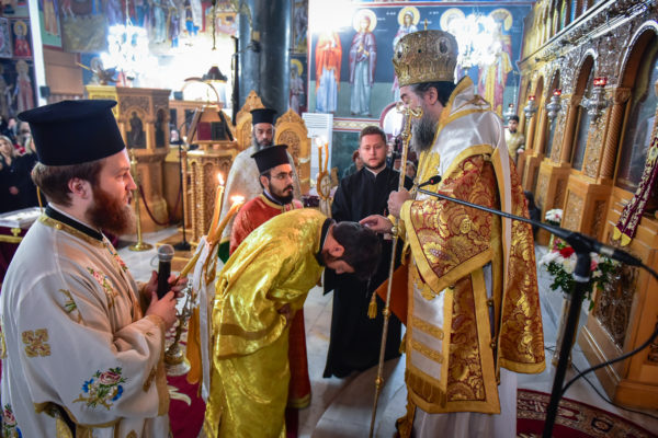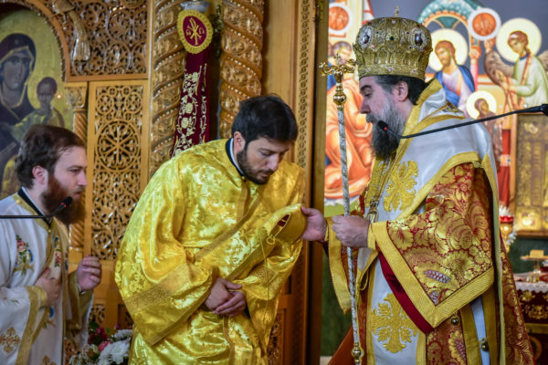 Ο Σεβασμιώτατος κ. Θεολόγος, στον λόγο του προς το νεοχειροτονηθέντα διάκονο τόνισε πατρικώς μεταξύ άλλων και τα εξής: «Σήμερον, αγαπητέ μου Ιωάννη, την ημέρα του Κυρίου μας, την στολισμένη με τα ακριβά προνόμια της Αναστάσεως του Κυρίου μας, εν Εκκλησία πληθούση, προσέρχεσαι να λάβεις τον πρώτο βαθμό της αγίας ιερωσύνης, έτσι ώστε, ως ταπεινός διάκονος του Κυρίου μας Ιησού Χριστού να υπηρετήσεις, από του οικείου αυτού βαθμού την αγία Εκκλησία Του. Το μυστήριον της αγίας ιερωσύνης προϋποθέτει βαθειά πίστη, ταπείνωση, υπομονή και ακλόνητη εμπιστοσύνη στην αγάπη και την πρόνοια του Κυρίου μας. Επέλεξες ελευθέρως να γίνεις στρατιώτης Ιησού Χριστού, εργάτης στον θείο Αμπελώνα του Κυρίου μας, όχι για να απολαύσεις τιμές και επαίνους των ανθρώπων, αλλά για να θυσιασθείς, να εργασθείς, να ενδυθείς την πνευματική πανοπλία του αγίου Θεού και να πολεμήσεις νικηφόρα, όχι μόνον για τον εαυτόν σου, αλλά και για το ποίμνιο σε μία εποχή ιδιαιτέρως δύσκολη και παράξενη για την κοινωνία, την Εκκλησία και την Πατρίδα μας. Ζούμε σε χρόνους αποκαλυπτικούς, χρόνους, όπου οι θυελώδεις άνεμοι της αντιθείας, της αποιεροποιήσεως του ανθρώπου και της ζωής του, απειλούν να κρημνίσουν την ποιότητα, την ουράνια ομορφιά και την ένθεη προοπτική του ανθρώπου.