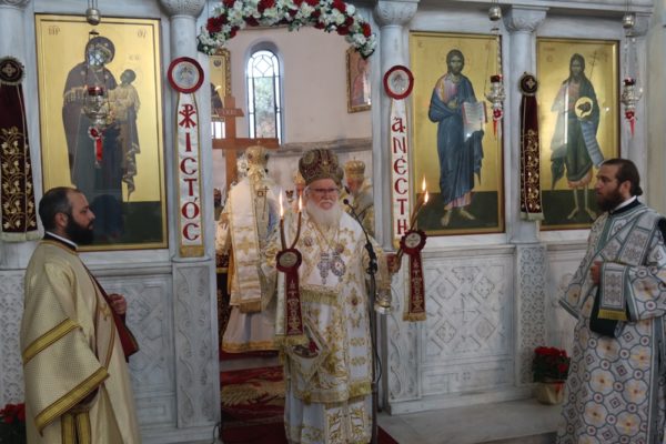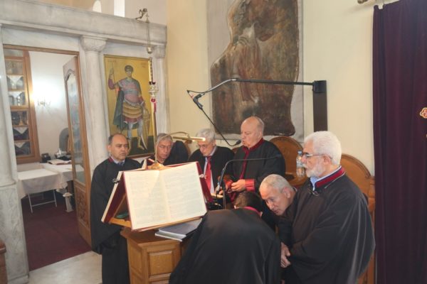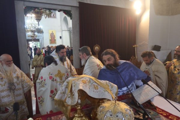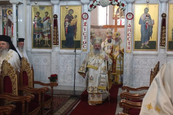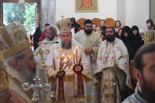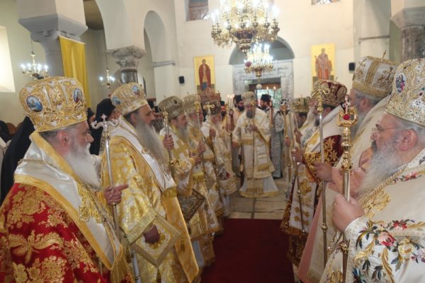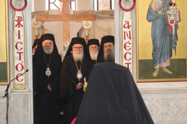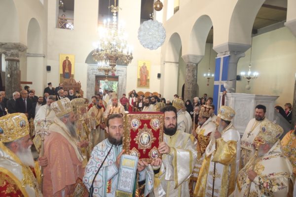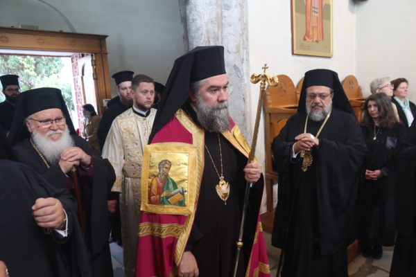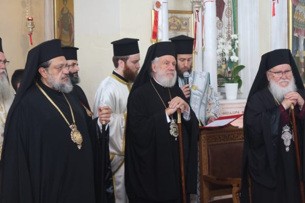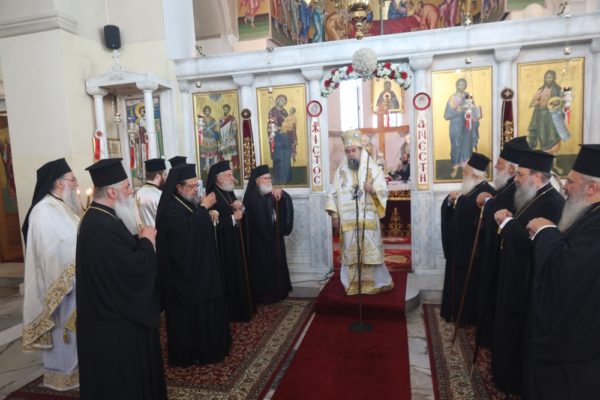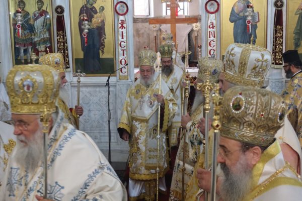 Συμμετείχαν οι Σεβασμιώτατοι Μητροπολίτες Ναζαρέτ κ. Κυριακός, Χίου κ. Μάρκος, εκπροσωπών και την Ιερά Σύνοδο, Σύρου κ. Δωρόθεος Β΄, Κερκύρας κ. Νεκτάριος, Πατρών κ. Χρυσόστομος, Μεσσηνίας κ. Χρυσόστομος, Κίτρους κ. Γεώργιος, Σταγών κ. Θεόκλητος, Καλαβρύτων κ. Ιερώνυμος και Λαγκαδά κ. Πλάτων, ενώ στο ιερό Βήμα συνηύχετο ο Σεβασμιώτατος Μητροπολίτης Βεροίας κ. Παντελεήμων.