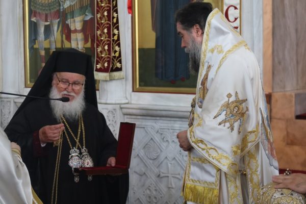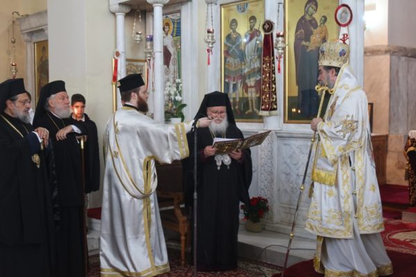 Ωσαύτως, και ο εκπροσωπών την Ιερά Σύνοδο Μητροπολίτης Χίου κ. Μάρκος ανέγνωσε μήνυμά Της προς τον Σεβασμιώτατο κ. Θεολόγο.