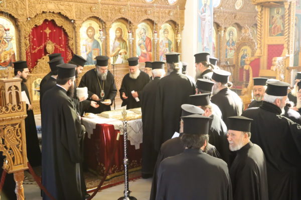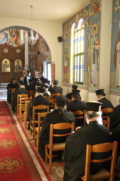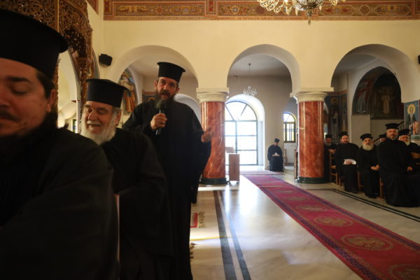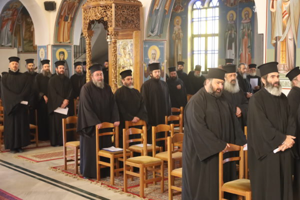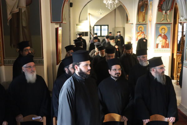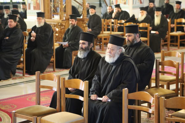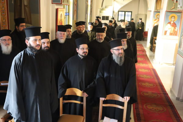 Στη συνέχεια, μετά την γενομένη εναρκτήριο προσευχή, ο Σεβασμιώτατος Μητροπολίτης κ. Θεολόγος, αφού ευχήθηκε στους εφημερίους την εξ ύψους ενίσχυση στο ευλογημένο και πολύπτυχο ιερό έργο τους, αναφέρθηκε διεξοδικά σε διάφορα υπηρεσιακά θέματα που απασχολούν τους κληρικούς, σε σύγχρονα προβλήματα και προκλήσεις που αντιμετωπίζει η Εκκλησία μας, καθώς και σε άλλα ζητήματα που πολύ σύντομα θα κληθεί να αντιμετωπίσει ποιμαντικώς, δίνοντας τις απαραίτητες κατευθύνσεις και διευκρινήσεις.