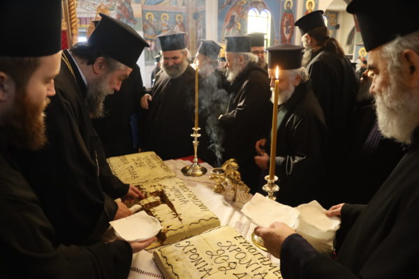 Αμέσως μετά, ο Σεβασμιώτατος ευλόγησε την πατροπαράδοτη αγιοβασιλειόπιτα, με την ευκαιρία της εισόδουστο νέο πολιτικό έτος 2024 και διένειμε σε όλους τα ευλογημένα τεμάχιά της, ευχόμενος εγκαρδίως και πατρικώς, ο φιλάνθρωπος Θεός, να ευλογήσει πλουσίως το νέο έτος, ώστε να είναι για όλους, τον ιερό κλήρο και τον φιλόχριστο λαό της Ιεράς Μητροπόλεως Σερρών και Νιγρίτης, αλλά και για την Πατρίδα μας και τον κόσμο ολόκληρο, έτος θερμουργού πίστεως, ευλογίας, μετανοίας, πνευματικής προκοπής, σωτηρίας, ειρήνης, αγάπης, υγείας και ευημερίας.