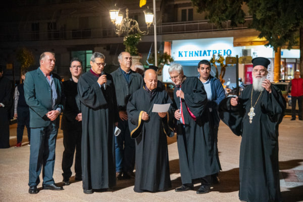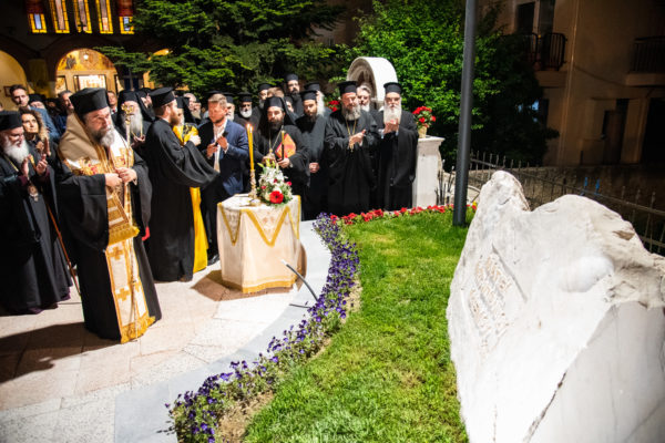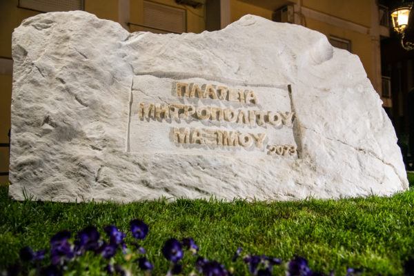 Τέλος, στον άρτι εξωραϊσθέντααύλειο χώρο του ιερού Μητροπολιτικού Ναού τελέσθηκε ειδική δέηση και αποκαλύφθηκε μαρμάρινος μνημειακός λίθος με λελαξευμένη την αναθηματική επιγραφή «Πλατεία Μητροπολίτου Μαξίμου-2023-».