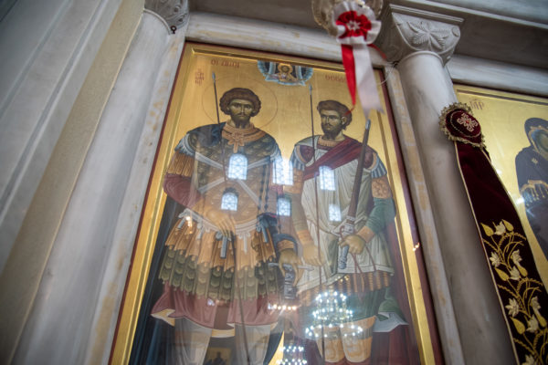 Σήμερα, Δευτέρα 8 Μαΐου, τελέσθηκε η πανηγυρική, πολυαρχιερατική θ. Λειτουργία, στον ιερό Καθεδρικό και Προσκυνηματικό Ναό Αγ. Θεοδώρων Σερρών, προεξάρχοντος του άγοντος τα σεπτά ονομαστήριά του Σεβ. Μητροπολίτου Σερρών και Νιγρίτης κ. Θεολόγου, συνιερουργούντων των Σεβ. Μητροπολιτών Ναζαρέτ κ. Κυριακού, Χίου, Ψαρών και Οινουσσών κ. Μάρκου και Καλαβρύτων και Αιγιαλείας κ. Ιερωνύμου (εκπροσώπων της Ιεράς Συνόδου της Εκκλησίας της Ελλάδος), Βεροίας, Ναούσης και Καμπανίας κ. Παντελεήμονος (συμπροσευχομένουεντός του ιερού Βήματος), Σύρου, Τήνου, Άνδρου, Κέας, Μήλου, Δήλου και Μυκόνου κ. Δωροθέου, Κερκύρας, Παξών και Διαποντίων Νήσων κ. Νεκταρίου, Πατρών κ. Χρυσοστόμου, Μεσσηνίας κ. Χρυσοστόμου, Κίτρους, Κατερίνης και Πλαταμώνοςκ. Γεωργίου, Σταγών και Μετεώρων κ. Θεοκλήτου και Λαγκαδά, Λητής και Ρεντίνης κ. Πλάτωνος. Συμπροσευχητικώς παρίσταντο οι οσιολ. Καθηγουμένες των ιερών Μονών Τιμ. Προδρόμου και Παναγίας «Βύσσιανης» Σερρών και Προφ. Ηλιού Αγ. Πνεύματος, μον. Φεβρωνία, Ισιδώρα και Ακυλίνα, μετά των συνοδειών αυτών. Επίσης, παρευρέθηκαν οι Βουλευτές του Νομού Σερρών κ. κ. Κ. Καραμανλής, Φ. Αραμπατζή, Αν. Χατζηβασιλείου, Θ. Λεονταρίδης, Κ. Μπούμπας και Ελ. Αβραμάκης, ο Αντιπεριφερειάρχης Σερρών κ. Π. Σπυρόπουλος, ο Δήμαρχος Σερραίων κ. Αλ. Χρυσάφης,ο Διοικητής του 10ου Συντάγματος ΠΖ κ. Αδ. Σαρρής, ο Αστυνομικός Διευθυντής Σερρών κ. Ευάγγ. Τσιώτας, ο Διοικητής της Πυροσβεστικής Υπηρεσίας Σερρών κ. Ν. Παπαδόπουλος, εκπρόσωποι θεσμικών Φορέων, μαθητές και μαθήτριες του 1ου και 3ου Γυμνασίου Σερρώνκαι μέγα πλήθος του φιλόχριστου και φιλάγιου λαού του Θεού.