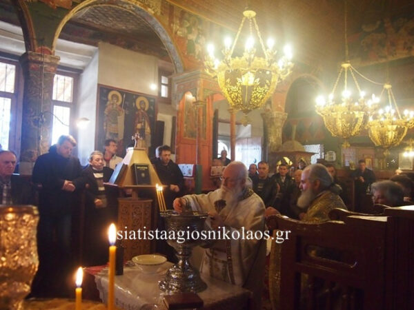 Μετά το τέλος της Θείας Λειτουργίας, οι Ιερείς ευλόγησαν με τον αγιασμό τα μέλη του Συλλόγου Αμπελουργών – Οινοπαραγωγών Σιάτιστας, «Ο Άγιος Τρύφων», καθώς και όλο το εκκλησίασμα. Τα μέλη του Συλλόγου Αμπελουργών, στο προαύλιο του Ιερού Ναού, κερνούσαν σε όλους όσοι εκκλησιάστηκαν δικό τους τσίπουρο και λουκούμι. Όλοι ανταπέδιδαν ευχές για καλές δουλειές και καλή χρονιά με ανταμοιβή των κόπων τους.