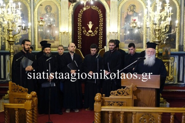 Τον λόγο πήρε πάλι ο π. Βασίλειος, ο οποίος αφού ευχαρίστησε πρώτα τον Άγιο Τριαδικό Θεό, για επιτυχία της εκδηλώσεως, στη συνέχεια ευχαρίστησε τον εορτάζοντα Άγιο Νικόλαο, που πρεσβεύει για τη σωτηρία όλων των ενοριτών, κατόπιν ευχαρίστησε τον Επίσκοπο κ. Αθανάσιο, τα μέλη της χορωδίας και όλους παρευρισκομένους στην εκδήλωση, οι οποίοι ήλθαν με πολύ πόθο και επιθυμία, να ακούσουν τον λόγο του Θεού.