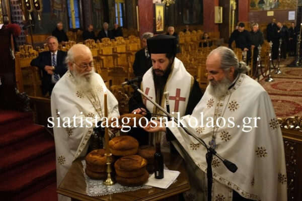 Πριν το τέλος του εσπερινού ο Σεβασμιώτατος ευλόγησε τους άρτους, τον οίνον, τον σίτον και το έλαιον.