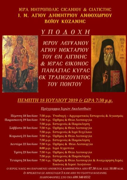 Ι.Μ. Σισανίου και Σιατίστης 19 Ιουλίου, 2019 Υποδοχή Ιερού Λειψάνου Αγίου Νεκταρίου στο Ανθοχώρι Βοΐου Διαδώστε: Υποδοχή Ιερού Λειψάνου Αγίου Νεκταρίου στο Ανθοχώρι Βοΐου κατά την Πέμπτη 18 Ιουλίου 2019. ΠΑΡΑΚΟΛΟΥΘΗΣΤΕ: Διαδώστε: