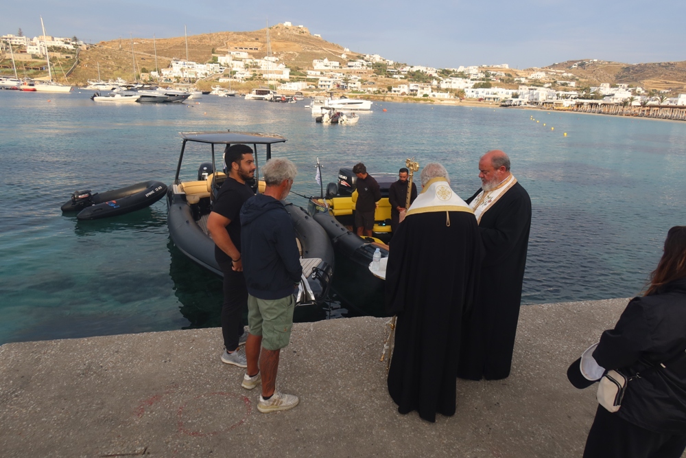Το πρωί του Σαββάτου 3 Ιουνίου ο Μητροπολίτης Σύρου κ. Δωρόθεος Β’ μετέβη στην περιοχή «Ορνός» της Μυκόνου, συνοδευόμενος από τον Αρχιερατικό Επίτροπο Δήλου και Μυκόνου, Πρωτοπρ. Πέτρο Μαραγκό, και τέλεσε αγιασμό στα εκεί ελλιμενισμένα φουσκωτά σκάφη.