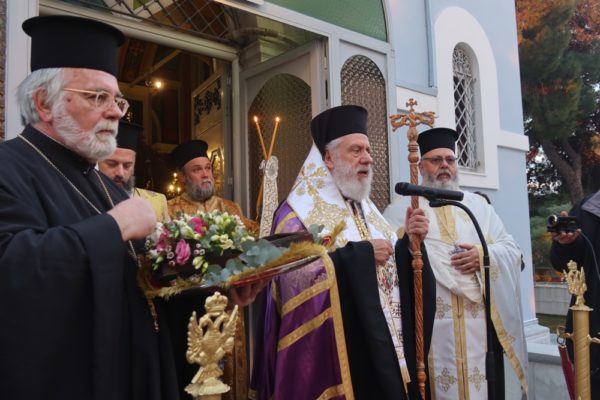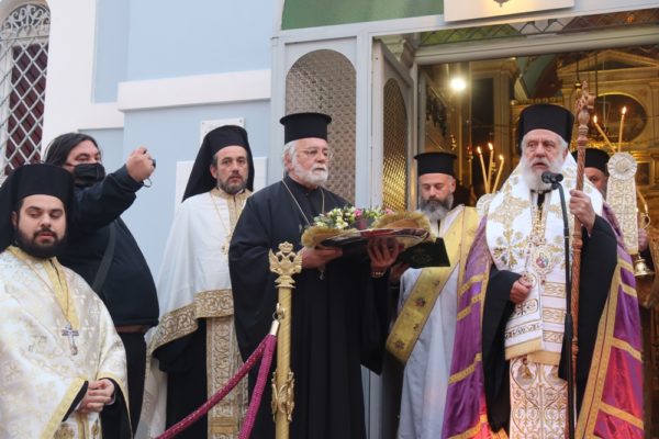 Προ του πέρατος της Ακολουθίας, ο Σεβασμιώτατος κ. Δωρόθεος Β΄ ευχαρίστησε τους προσελθόντες πιστούς, τη Φιλαρμονική του Δήμου Σύρου-Ερμούπολης, η οποία πλαισίωσε την υποδοχή του λειψάνου, τον Περιφερειακό Τηλεοπτικό Σταθμό “SYROS TV 1” που αναμετέδωσε την Ακολουθία, τους εκπροσώπους των άλλων μέσων κοινωνικής ενημέρωσης που παρέστησαν, το χορό των Ιεροψαλτών, και τον Εφημέριο του Ναού, Πρωτοπρ. Χριστοφόρο Παπανικολάου και του συνεργάτες για την οργάνωση και τον ευπρεπισμό της Εκδηλώσεως.