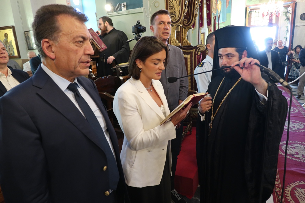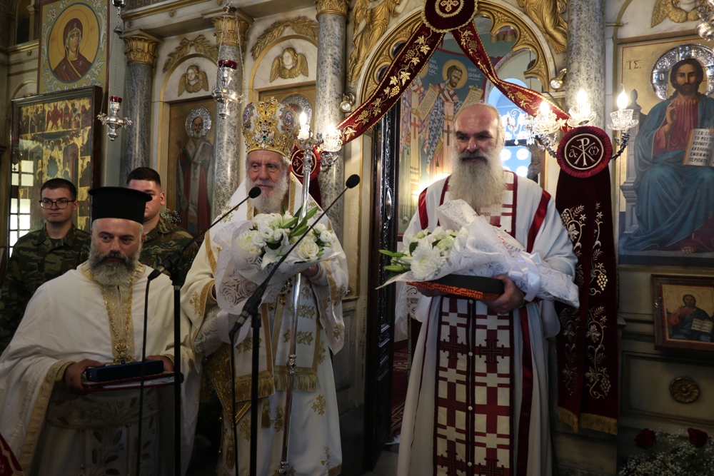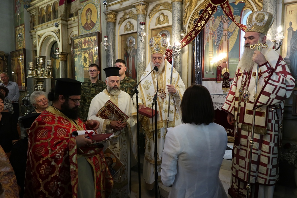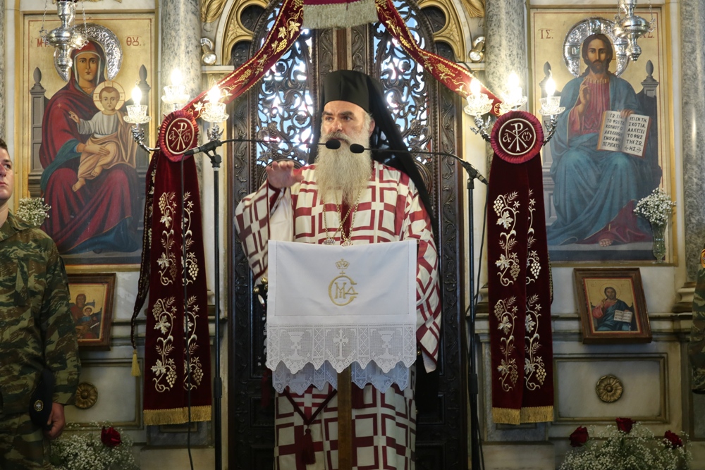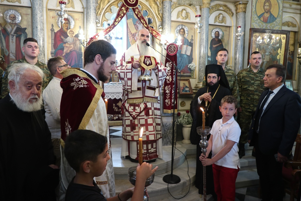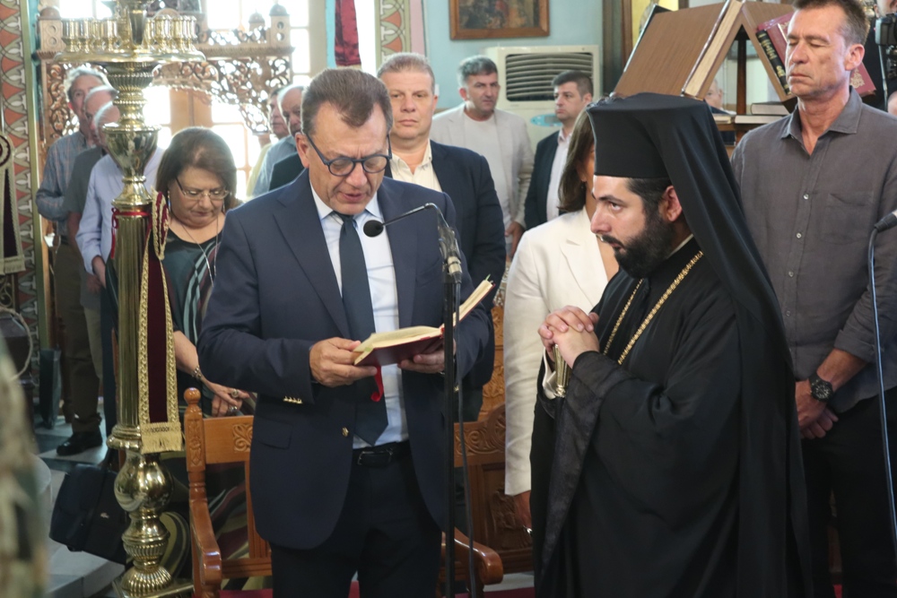 Η Θεία Λειτουργία τελέσθηκε παρουσία, ως και εχθές του Υπουργού Αναπληρωτή Αθλητισμού κ. Ιω. Βρούτση, των εκπροσώπων των τοπικών αυτοδιοικητικών αρχών και των Σωμάτων ασφαλείας και πλήθους πιστών, προς τους οποίους ομίλησε με πατρικό, διδακτικό και παραινετικό λόγο ο Σεβασμιώτατος Μητροπολίτης Ελασσώνος κ. Χαρίτων.