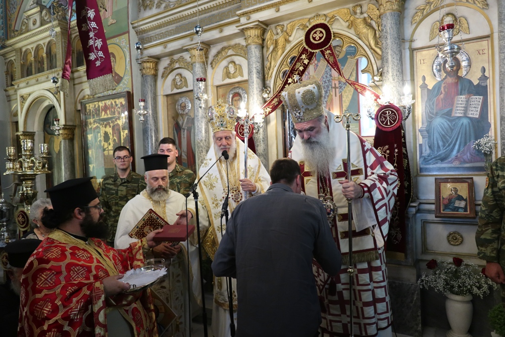 Προ του πέρατος της Ακολουθίας, ο Σεβασμιώτατος κ. Δωρόθεος Β’ απένειμε Τιμητικό Δίπλωμα και εικόνα του Αγίου Νικολάου στους συνοδεύοντες τον Υπουργό Αναπληρωτή Αθλητισμού διακεκριμένους αθλητές Λάμπρο Παπακώστα, Ασημένιο Παγκόσμιο Πρωταθλητή στο άλμα εις ύψος και Ειρήνη Νίνου, Ολυμπιονίκη και Ασημένια Πρωταθλήτρια Ευρώπης στην Υδατοσφαίριση, τιμώντας τη στεφανηφόρο πορεία τους στον αθλητισμό και το γνήσιο αθλητικό πνεύμα που τους διακρίνει, καθιστώντας τους πρότυπα για τους νέους μας. Επίσης ο Πανελλήνιος Σύνδεσμος Κατακομβών απένειμε τις δυο καθιερωμένες υποτροφίες στους αριστεύσαντες Μηλίους φοιτητές.