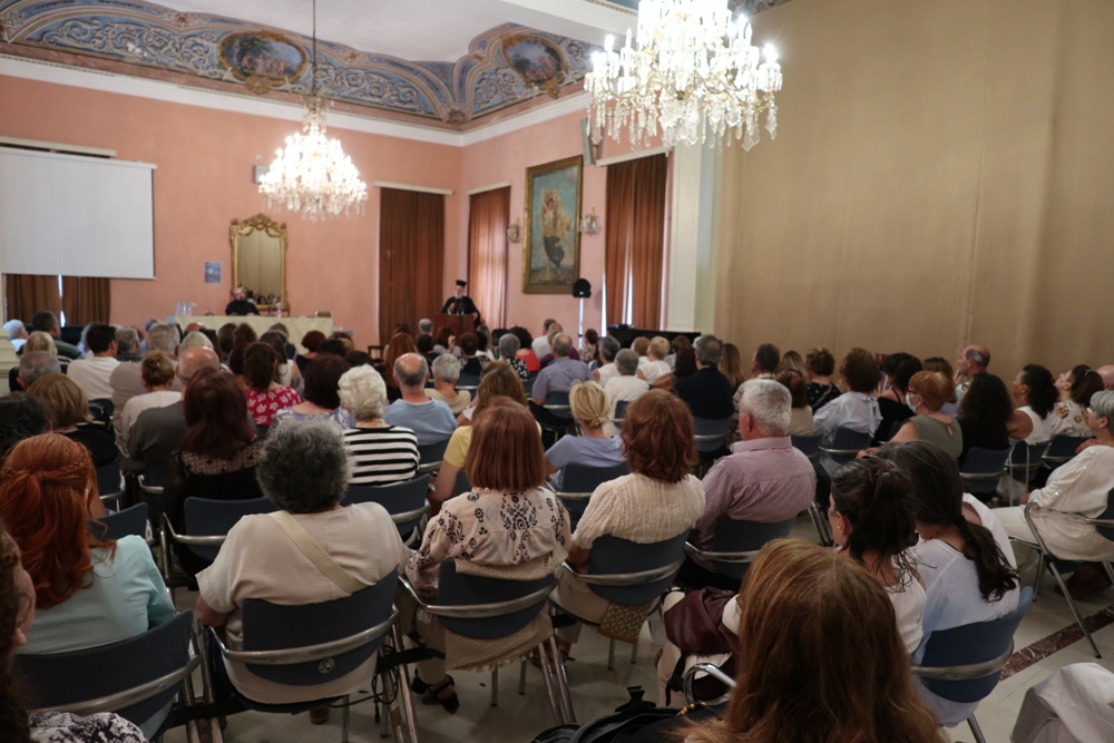 01/07/2025 01/07/2025 Στις κατάμεστες Αίθουσες του Πνευματικού Κέντρου του Δήμου Σύρου-Ερμούπολης πραγματοποιήθηκε η Εορταστική Εκδήλωση λήξης των συναντήσεων της περιόδου 2024-2025. Οι ομιλητές ήταν ο Υπεύθυνος και ως αληθώς «καρδιά του Σχολείου Οικογένειας» της Ιεράς Μητροπόλεως Θεολόγος-Ψυχοθεραπευτής και Ιεροκήρυκας Αρχιμ. Μελετιος Ζαχαρόπουλος, ο Τοποτηρητής της Καθολικής Επισκοπής Σύρου Σεβασμιώτατος κ. Σεβαστιανός και ο Σεβασμιώτατος Μητροπολίτης Σύρου κ....