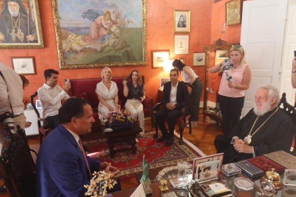Ο Άδωνις Γεωργιάδης ευχαρίστησε τον Σεβασμιώτατο και εκδήλωσε την ετοιμότητά του για την επίλυση προβλημάτων που αφορούν την προαγωγή της υγείας στη Σύρο και τις Κυκλάδες γενικώτερα.