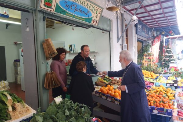 Ευχετήρια περιοδεία του Μητροπολίτη Σύρου στην αγορά της Ερμούπολης
