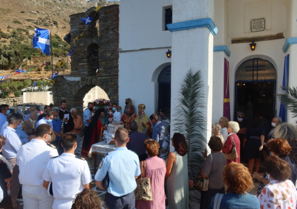 Ο Σεβασμιώτατος κ. Δωρόθεος Β΄ ιερούργησε σήμερα το πρωί στον Ενοριακό Ιερό Ναό της Αγίας Σοφίας Άνω Γαυρίου, με τη συμμετοχή του Εφημερίου του Ναού, Αρχιμ. Καλλινίκου Τσούση και του παρεπιδημούντος στην Άνδρο Συνοδικού Γραμματέως, Αρχιμ. Διονυσίου Χατζηαντωνίου, και τη συνευχητική παρουσία της Ηγουμενευούσης της Ιεράς Μονής Ζωοδόχου Πηγής Μοναχής Παρθενίας, του διατελέσαντος Δημάρχου Άνδρου, ιατρού κ. Θεοδ. Σουσούδη, του Προέδρου της Τοπικής Κοινότητος Άνω Γαυρίου κ. Ευαγγ. Μαμάη, Δημοτικών Συμβούλων, του Διοικητή και Υποδιοικητή της Ναυτικής Βάσης Αμμολόχου, Αξιωματικών της ΕΛΑΣ και του Λιμενικού Σώματος και πλήθους πιστών από την περιοχή Γαυρίου και άλλες περιοχές της Άνδρου.