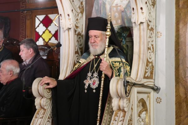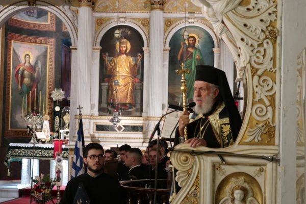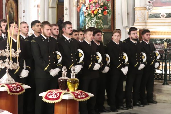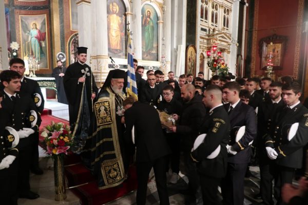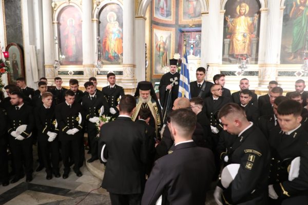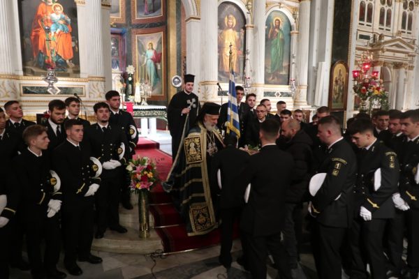 Συνεχάρη τους Σπουδαστές της Ακαδημίας Εμπορικού Ναυτικού Σύρου για την παρουσία τους, την ευγένεια και τον πολιτισμό τους, τους προέτρεψε στις δύσκολες στιγμές που θα αντιμετωπίσουν στις γέφυρες των πλοίων τους και της ζωής τους πάντοτε να στρέφουν τη σκέψη και την προσευχή τους προς τον Άγιο Νικόλαο, να επιζητούν τη βοήθειά του, με τη βεβαιότητα ότι θα βρίσκεται μαζί τους στη “βάρδια”, προστάτης και συγκυβερνήτης και τους διένειμε εικόνες του Αγίου Νικολάου.